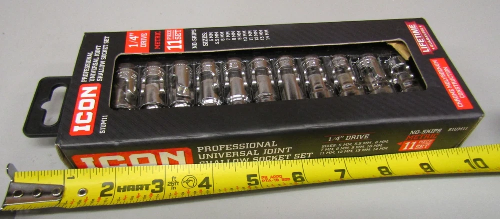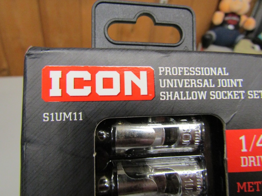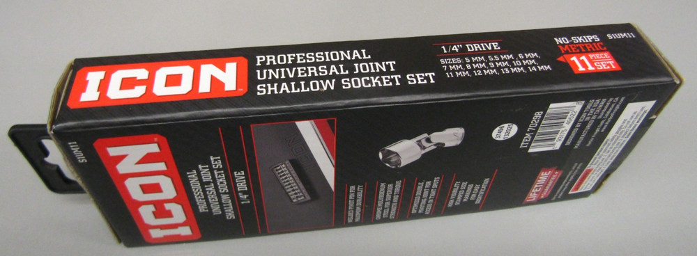 Icon S1UM11 1/4"dr. Metric 11pc Professional Universal Joint Shallow Socket Set as pictured