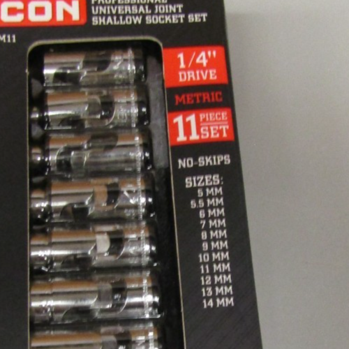 HomeIcon S1UM11 1/4"dr. Metric 11pc Professional Universal Joint Shallow Socket Set