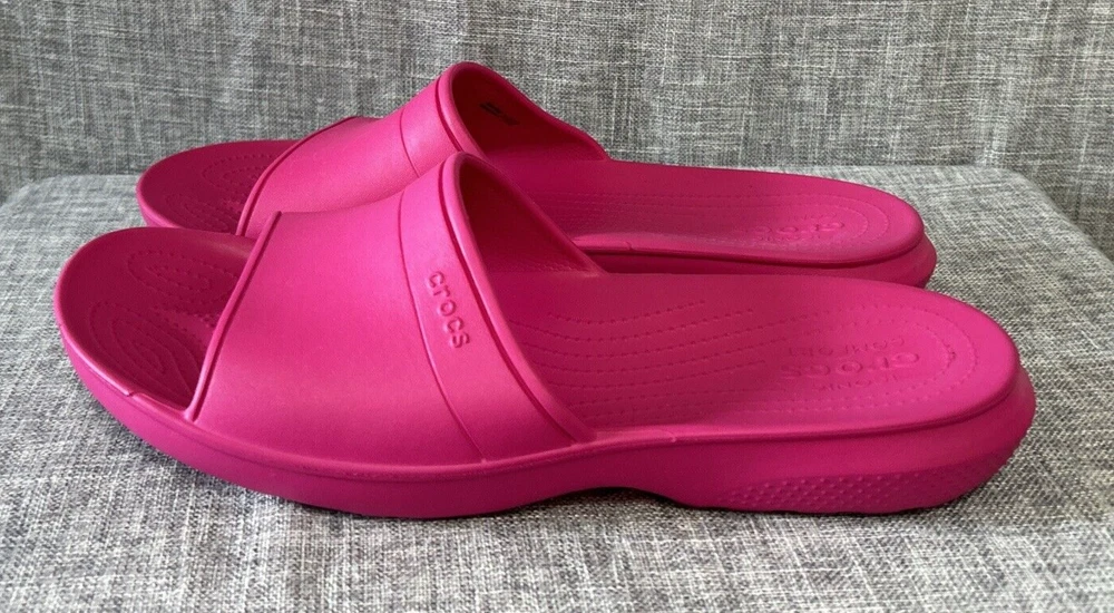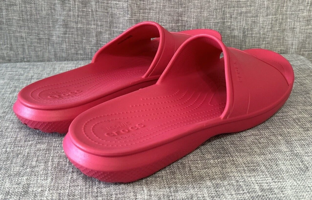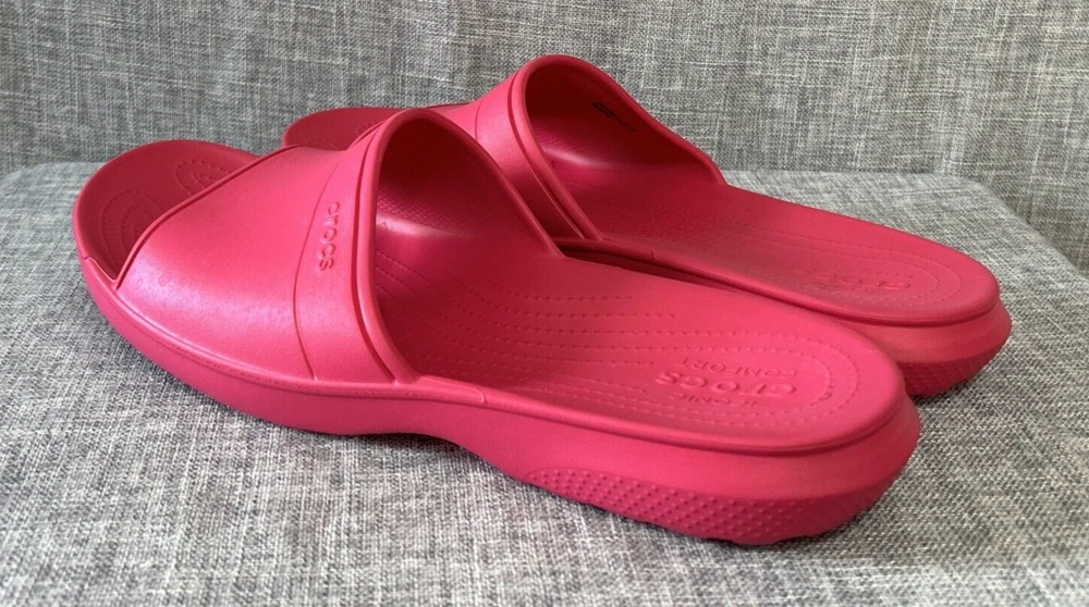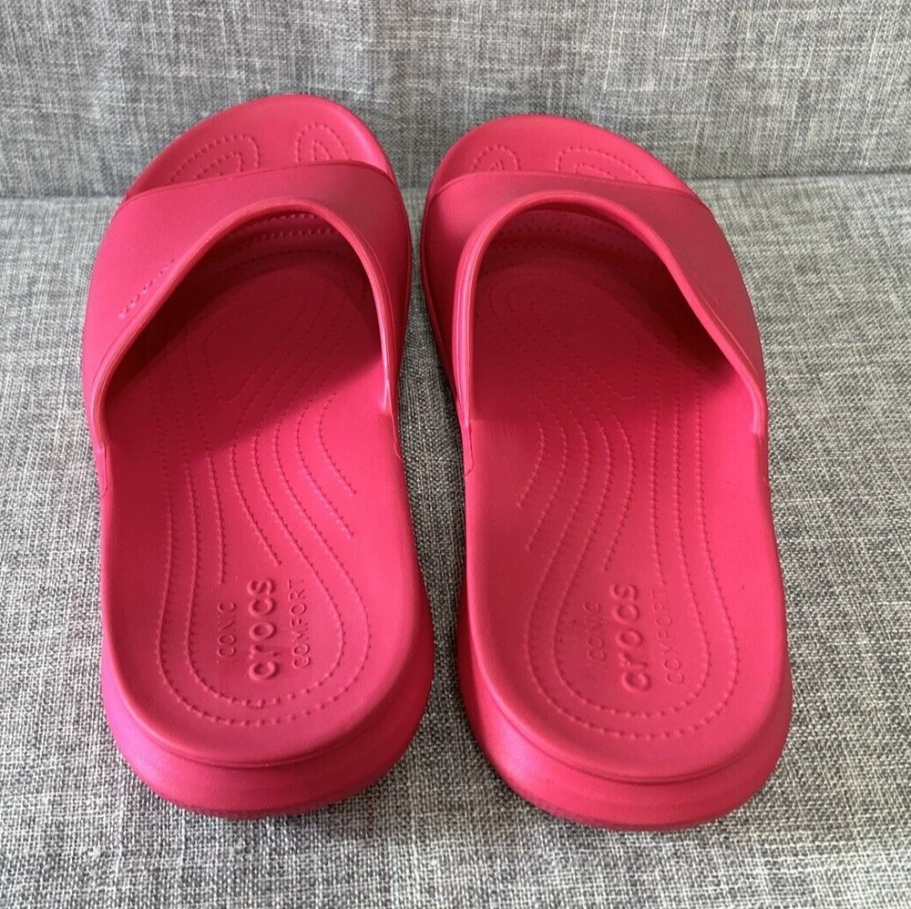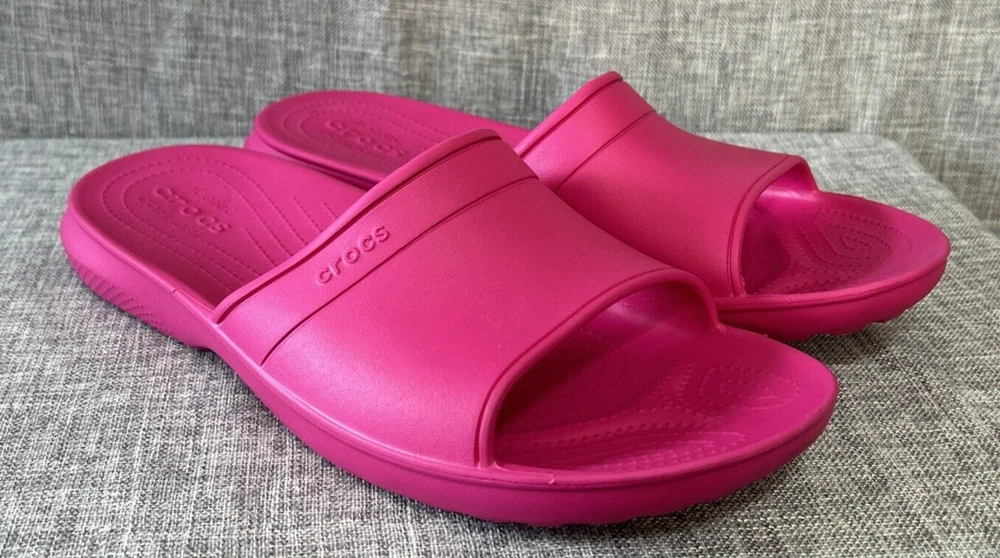 Iconic Crocs Comfort Slides, Fuchsia Hot Pink, No Holes Crocband, Men's Size 13 **Color is the Fuschia/Hot Pink Color as seen in the first 12 Pictures** Pre-Owned - Please see Pictures for Details