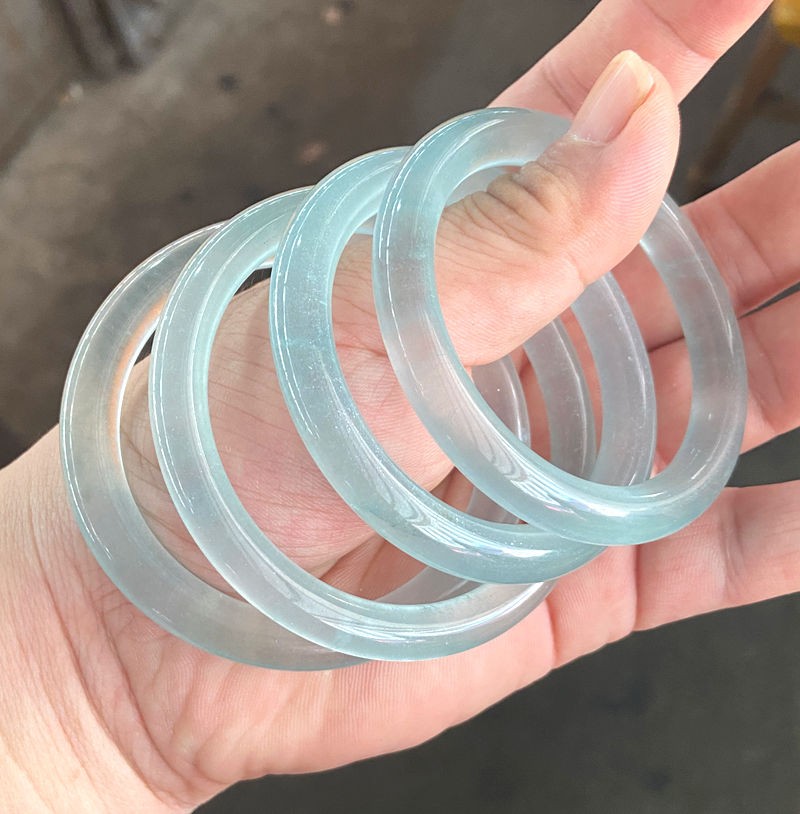 $ 15.8355-64mm Natural Grade A Icy Blue Jadeite Bangle Bracelet