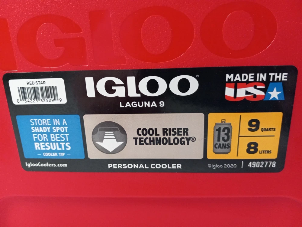Keep your drinks and snacks cool and fresh with the Igloo Laguna 9 Qt Red Personal Cooler Ice Chest Lunchbox. This 9 qt capacity cooler box can hold up to 13 cans of your favorite beverage and is perfect for sports events or outdoor activities. It features a solid red color and is made of durable plastic material, with a tow handle for easy mobility. The Igloo Laguna cooler box requires no assembly and weighs only 3 lbs, making it lightweight and easy to carry around. It has an item depth of 9.5" and a height of 9", with an item width of 13". This cooler box is perfect for those who love the outdoors and need a reliable way to keep their food and drinks fresh and cool.