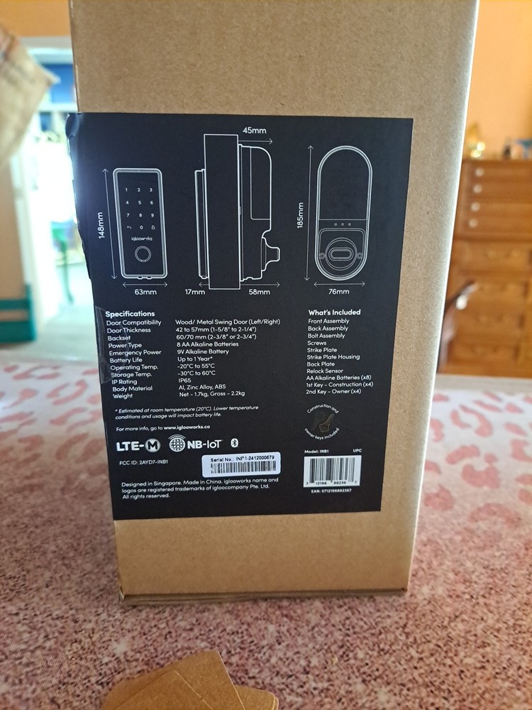 Upgrade your home security with the Igloohome Cellular Deadbolt by Iglooworks. This modern deadbolt features keyless entry and Bluetooth connectivity, making it easy to unlock and lock your front entrance door from anywhere. The hardware comes complete with instructions and a key, and the matte black finish adds a sleek touch to any residential door. Constructed from durable bronze and chrome materials, this universal deadbolt fits most doors and includes fixings for easy installation. The Igloohome model INB1 also has a double slide door handing and a cross bore diameter for added security. Don't settle for outdated security measures - upgrade to the Igloohome Cellular Deadbolt for peace of mind.