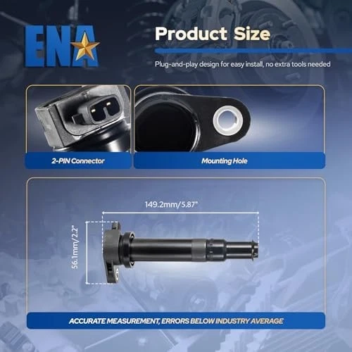 Vehicle Fitment-1: Ignition Coil Pack Compatible with Hyundai Accent 2006 2007 2008 2009 2010 2011 L4 1.6L Vehicle Fitment-2: Ignition Coil Compatible with Kia Rio 2006 2007 2008 2009 2010 2011 L4 1.6L VIN:3, Rio5 2006 2007 2008 2009 2010 2011 L4 1.6L VIN:3. CoilPacks Compatible with Dodge Attitude 2006 2007 2008 2009 2010 L4 1.4L, Attitude 2006 2007 2008 2009 2010 L4 1.6L ENA Ignition Coils Pack Reference Number: 2730126640 27301-26640 UF-499 UF499 CUF499 5C1586 C691 49179 1788290 48972 6738308 GN10330 1AMIC00042 IC579. ENA Ignition Coils Features: plug-and-play design that allows for easy installation and are compatible with popular vehicles such as 2006 2007 2008 2009 2010 2011 Accent Rio Rio5 Attitude L4 1.4L 1.6L ENA Coil Packs Kit Specifications: 1. Terminal Quantity: 2; 2. Mount Type: Bolt On; 3. Voltage: 12V. ENA ignition coil packs are engineered to ensure reliable ignition and consistent spark output Package Content: Set of 4 Coil Packs; 12-Month Warranty. Drive forward with durable coil packs. Please enter your vehicle in your Amazon Garage above to see if this part is compatible with your vehicle