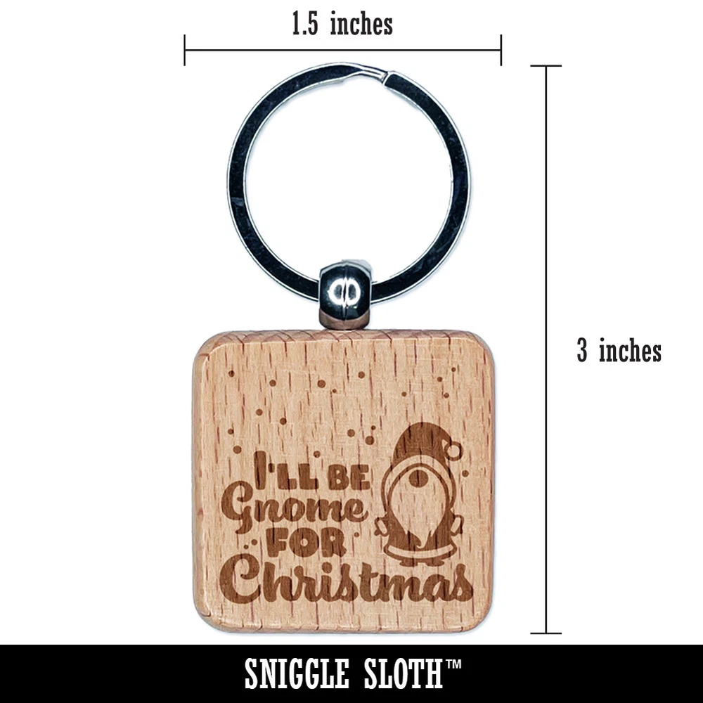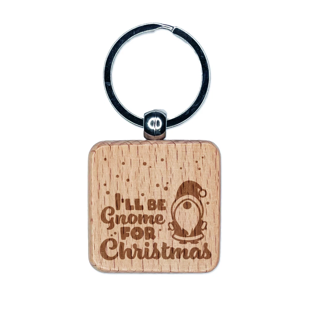 I'll Be Gnome For Christmas Home Engraved Wood Square Keychain Tag Charm