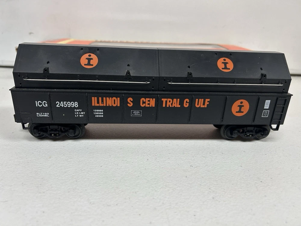 THIS IS A USED LIONEL 6-17404 ILLINOIS CENTRAL GULF STANDARD O GONDOLA. PLEASE LOOK AT PICTURES AND ASK ANY QUESTIONS AS I DO NOT ACCEPT RETURNS. THANKS FOR LOOKING