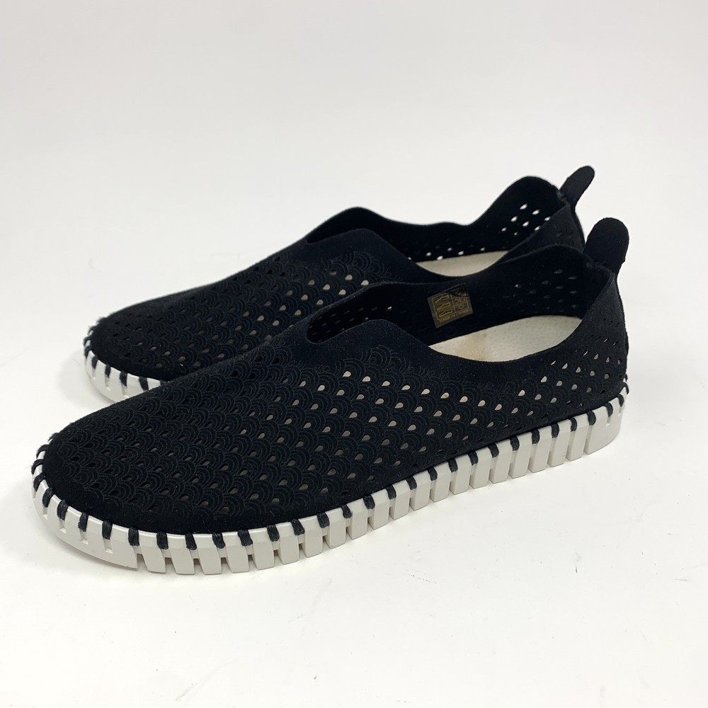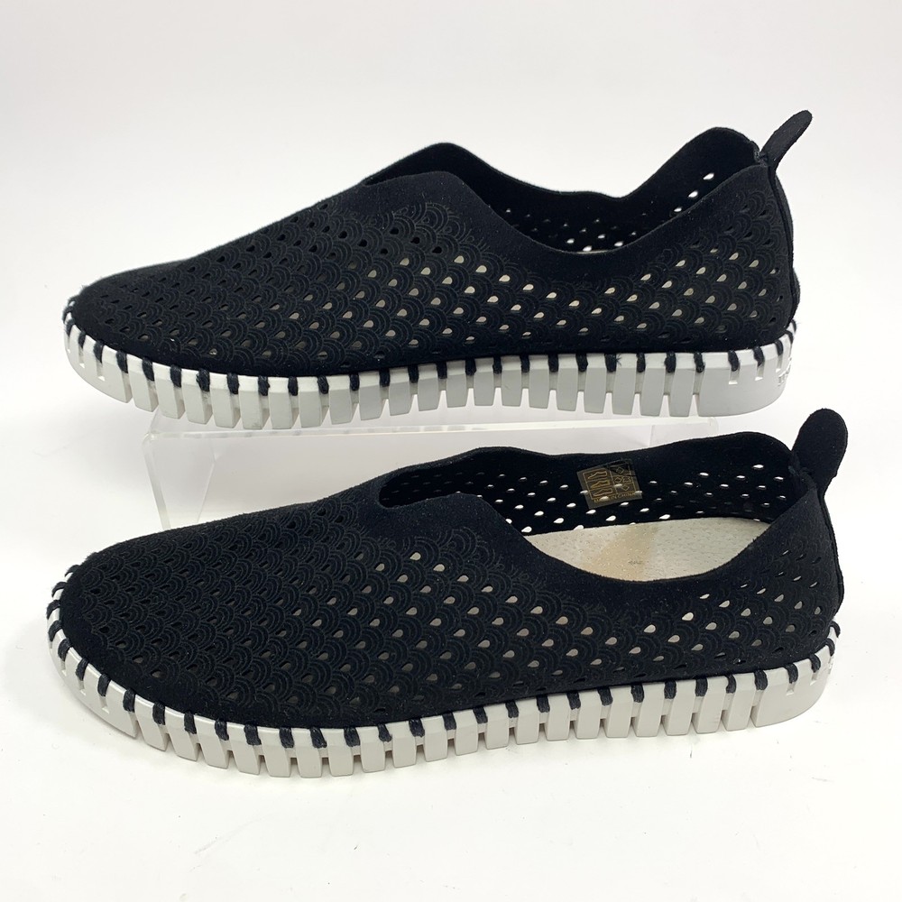 Ilse Jacobsen Tulip Black Perforated Shoes Slip On Womens 40 EU US 9-9.5 Nice condition, one shoe has an area of discoloration on the insole and these have light wear to the soles. Feel free to contact me with any questions, I'm happy to help.