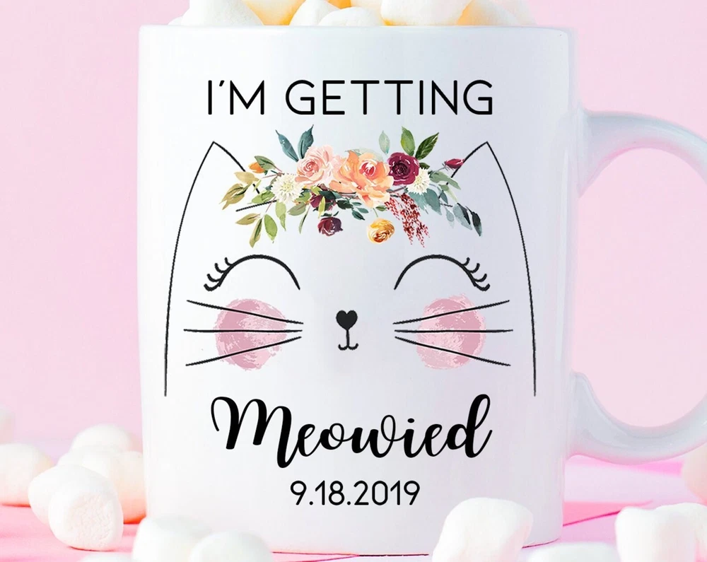 I'm Getting Meowied Mug Future Mrs Gift Engagement Gift Cute Cat Mug Bride To Be Product Details.. This high quality 11oz. ceramic white mug has a premium hard coat that provides crisp and vibrant color reproduction sure to last for years. Perfect for all hot & cold beverages. The highest quality printing possible is used. It will never fade no matter how many times you wash it. Material: 100% Ceramic. Print both sides. Dishwasher and Microwave Safe. High Gloss + Premium White Finish. Printed in the U.S.A. Personalized & Custom. We support personalized and custom mug to add custom, when placing an order, you can add notes to the "order note" in shipping address section. Also you can contact us directly via message. Shipping Info. Ready to ship in 1 to 2 business days, All products are made-to-order and proudly printed in the United States. Shipped by USPS and DHL, You will receive your order in 5-7 days. Replace & Refund. All products are defective during shipping broken, chipped will be replaced free of charge. You are not satisfied with the product, we will refund 100% money to you. If any other issues arise, please do not hesitate to message, we would be more than happy to assist you.