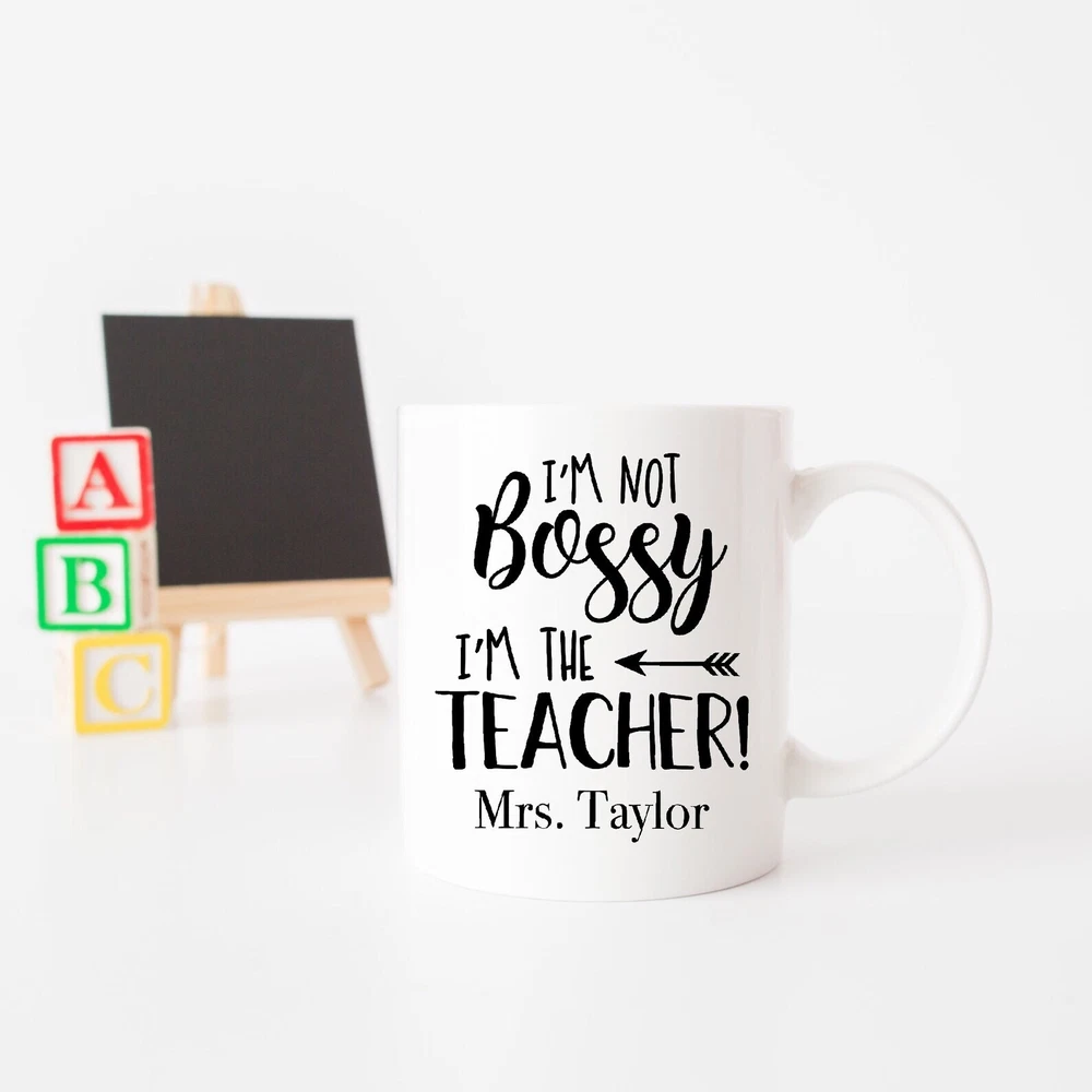I'm Not Bossy I'm The Teacher Custom Teacher Mug Teacher Gift End Of The Year Product Details.. This high quality 11oz. ceramic white mug has a premium hard coat that provides crisp and vibrant color reproduction sure to last for years. Perfect for all hot & cold beverages. The highest quality printing possible is used. It will never fade no matter how many times you wash it. Material: 100% Ceramic. Print both sides. Dishwasher and Microwave Safe. High Gloss + Premium White Finish. Printed in the U.S.A. Personalized & Custom. We support personalized and custom mug to add custom, when placing an order, you can add notes to the "order note" in shipping address section. Also you can contact us directly via message. Shipping Info. Ready to ship in 1 to 2 business days, All products are made-to-order and proudly printed in the United States. Shipped by USPS and DHL, You will receive your order in 5-7 days. Replace & Refund. All products are defective during shipping broken, chipped will be replaced free of charge. You are not satisfied with the product, we will refund 100% money to you. If any other issues arise, please do not hesitate to message, we would be more than happy to assist you.