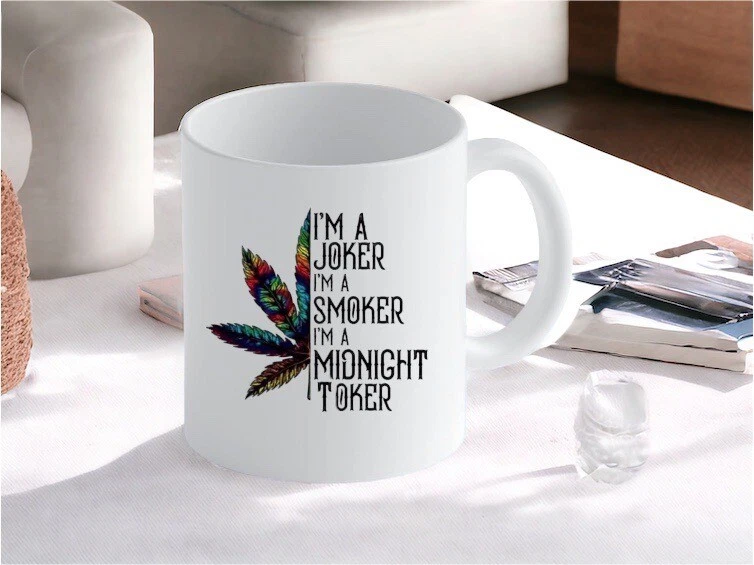 Get your hands on this hilarious coffee mug perfect for any occasion! This unique ceramic mug features a fun and catchy phrase "I’m a Joker I’m A Toker I’m a Midnight smoker" and a Marijuanna character design that will make you and your guests laugh. The 11oz mug is perfect for any coffee or tea lover and is both microwave and dishwasher safe. With a modern style and a variety of themes including garden, Christmas, family & friends, music, video games, food/kitchen, food & drink, and logos, this mug is a great addition to your collection. Whether it's for a birthday, gift, Fathers Day, Mothers Day or any other occasion, this mug is sure to impress. Don't miss your chance to own this unique and fun coffee mug! I custom make these mugs and are made to order once payment is made. Made in one day, ship the next business day. Thank you! Questions? Please ask!!