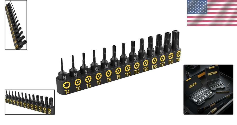 Impact Grade Tamper Resistant Torx Bit Set | 13-Piece S2 Steel and Organizer ‹ › ‹ › ‹ › ‹ › ‹ › ‹ › ‹ › ‹ › Impact Grade Tamper Resistant Torx Bit Set | 13-Piece S2 Steel and Organizer Product Features: TAMPER RESISTANT TORX SET: This set features 13 pieces of 1/4-inch shank torx bits, conveniently stored in an organizer sleeve with sizes clearly printed in vibrant yellow for quick and easy identification. DURABLE: Crafted from industrial grade S2 alloy steel, these bits are heat-treated to reduce wear-outs and ensure longevity. Each bit is precision CNC-machined to guarantee a smooth, precise fit, protecting both your bits and fasteners. LONGEVITY: The active Manganese Phosphate treatment provides complete rust and corrosion resistance, ensuring enhanced durability in every situation. COMFORTABLE: Enjoy a seamless insertion with precision chamfered bit ends. Sizes are stamped on each bit and prominently printed in yellow on the storage organizer for speedy access. 100% RISK-FREE: This set meets and exceeds ANSI standards and is backed by a Lifetime Limited , giving you complete peace of mind with your purchase. Included Sizes: 1/4-inch shank - T-4, T-5, T-6, T-7, T-8, T-9, T-10, T-15, T-20, T-25, T-27, T-30, T-40. (Please Note: T-4 is NOT a Security Tamper Proof Type) Why Choose This Torx Bit Set? Aren't you tired of bits that wear down easily and strip screws? This Tamper Proof Torx Bit Set not only offers extraordinary durability and a comfortable experience, but its precision manufacturing ensures that each bit performs seamlessly. Perfect for both professionals and DIY enthusiasts, these bits will withstand the of time and maintain their integrity across various applications. Enhance your toolbox with this indispensable set, designed to meet your highest standards of quality and performance. Order yours today, and experience the difference for yourself! Shipping Free & Fast Shipping - We offer free shipping to most of the USA with a normal delivery time of 3-7 days. However, due to the current situation, additional delivery time (up to 3 weeks) may be required for some items. Alternative Carriers - We may use alternative carriers (e.g. USPS, FedEx, UPS, etc.) to ensure your package arrives safely and on time. Due to the use of multiple carriers, we are unable to provide a tracking number automatically. Handling Time - Orders are processed and shipped within 1-2 business days of receiving cleared payment. Shipping Restrictions - Shipping to Alaska, Hawaii, Puerto Rico, Guam, and other US territories may incur shipping charges or delivery restrictions. Please contact us before ordering, or your order can be refunded/cancelled. State Restrictions - There may be restrictions based on your state of purchase. For example, certain items may not be shipped to California due to state regulations. Contact for Tracking Updates - If you require tracking updates or have any concerns about the delivery of your order, please feel free to contact us, and we will be happy to assist you. Return 30-Day Hassle-Free Returns - We want you to be completely satisfied with your purchase. If you are not, you can return the item within 30 days of receiving it for a full refund or exchange. Easy Return Process - To start a return, simply contact us and we will provide you with a prepaid return shipping label and detailed instructions. Restocking Fee - There are no restocking fees for returns. However, the buyer is responsible for return shipping costs if the return is not due to a seller's error. Refund Processing Time - Refunds will be processed within 5 business days of receiving the returned item in its condition. Payment We accept all major credit cards, PayPal, and Apple Pay for your convenience. Your payment information is secure and encrypted to ensure a safe and seamless transaction. Please complete your payment within 3 days of purchase to avoid any delays in shipping. Feedback Your feedback is extremely important to us. We strive to provide the best products and customer service possible. If you are satisfied with your purchase, please take a moment to leave us a positive review. If you have any concerns or issues with your order, please contact us before leaving negative feedback. We are committed to resolving any problems and ensuring your satisfaction. Contact Us If you have any questions or concerns, please feel free to out to our customer support team. You can contact us through the eBay messaging system. We are available Monday to Friday, 9:00 am to 5:00 pm EST, and we will do our best to respond to your inquiry within 24 hours. Buy it now and enjoy a pleasant shopping experience! Model: Tamper Resistant Star Bit Set Item Height: Tamper Resistant Star Bit Set Item Depth: 0.6 inches Unit Quantity: 13 Suitable For: Air Compressor,Air Drill,Angle Grinder,Buffing,Cement,Commercial,Drill,Drywall Compound,Grout,Grout Mixer,Lathe,Liquid,Mortar,Orbital Sander,Oscillating Tool,Paint,Plaster,Polishing,Residential,Rotary Tool,Thinset Mortar,Tile Adhesive,Work Bench Type: Tamper Resistant Torx Bit Set Application: Cutting,Grinding,Grinding/Sanding,Grinding and Cutting,Mixing Number of Items in Set: 13 Package Quantity: 1 Material: Steel Color: Silver Item Length: 0.25 Inches Item Diameter: 0.25 in Item Weight: 2.4 oz Unit Type: oz