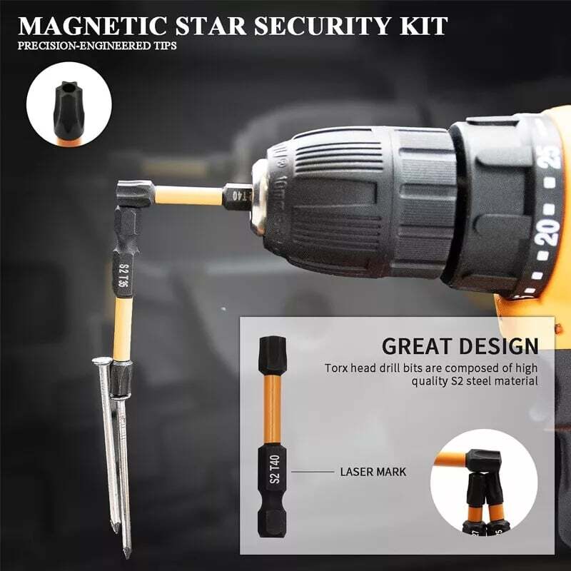 Product D escription 26PCS Torx S crewdriver Bit set W ith S afety R esistant 1/4" H ex S hank Product Characteristics High Q uality I ndustrial G rade M aterials: The Torx screwdriver bits are made of high-quality S2 alloy steel with a special heat treatment process to increase the torque and full hardness of the bit, which is more durable than ordinary hexagonal screw bits. The surface of the drill bit is treated with black phosphate, which effectively prevents rust and corrosion and greatly improves its service life. High P recision M achining T echnology: The product adopts CNC precision machining technology to ensure the accuracy of the product, so that the drill can withstand the instantaneous impact of large torque pneumatic tools, which greatly improves the service life of the product itself. Magnetic: The magnetic Torx screw drill set can quickly and easily adsorb screws, greatly improving your work efficiency. Repeated use does not diminish the magnetic force. Suitable F or A V ariety O f P ower T ools: The 1/4 size hexagonal shank allows it to accommodate a wide range of power tools, allowing you to quickly change chucks. Suitable for electric drill, air drill, electric screwdriver, manual screwdriver and so on. A W ide R ange O f U se S cenarios: Can be widely used in automobile, home and so on maintenance, can also be used in other screw drive. Product Specification Status: 100% Brand New Name: 26PCS Torx S crewdriver B it BST-129 Material: S2 A lloy S teel Length: 2"/50mm; 1"/25mm Shank T ype: 1/4" H ex S hank Color: Black + O range Surface T reatment: B lack Drill S hape: 1"/25mm M id- H ole P lum B lossom T ype; 2"/50mm P lum P attern Specifications: 2"/50mm: T7,T8,T9,T10,T15,T20,T20,T25,T25,T27,T30,T35,T40 1"/25mm: TT7,TT8,TT9,TT10,TT15,TT20,TT20,TT25,TT25,TT27,TT30,TT35,TT40 Package Included 13PCS × 1"/25mm Torx S crewdriver Bit S et 13PCS × 2"/50mm Torx S crewdriver Bit S et Attention P lease 1. Please allow manual measurement error of 1-5mm. Make sure you don't mind before you buy. There may be some slight differences in the hue of the picture and the actual item due to lighting effects, brightness contrast Settings of the monitor, etc. Make sure you don't mind. 3. Due to the aperture of the drill bit and the structure of the product itself, the speed of the T7,T8,TT7,TT8 drill bit is recommended to be controlled at 180r/min during use, so as to avoid the wear of the drill bit caused by too fast speed.