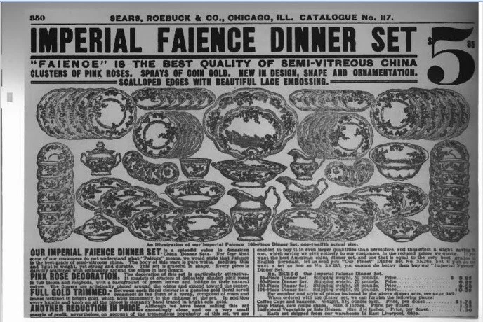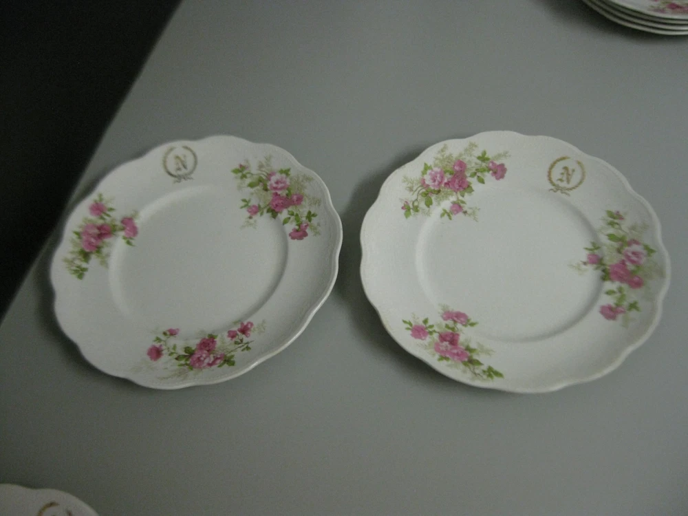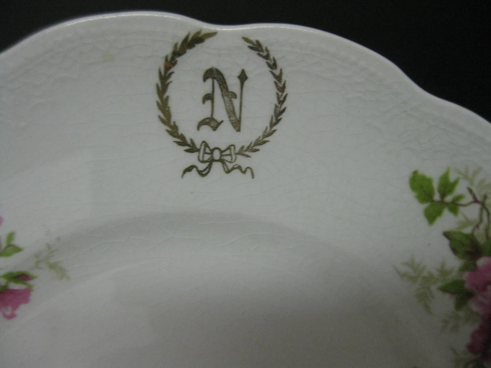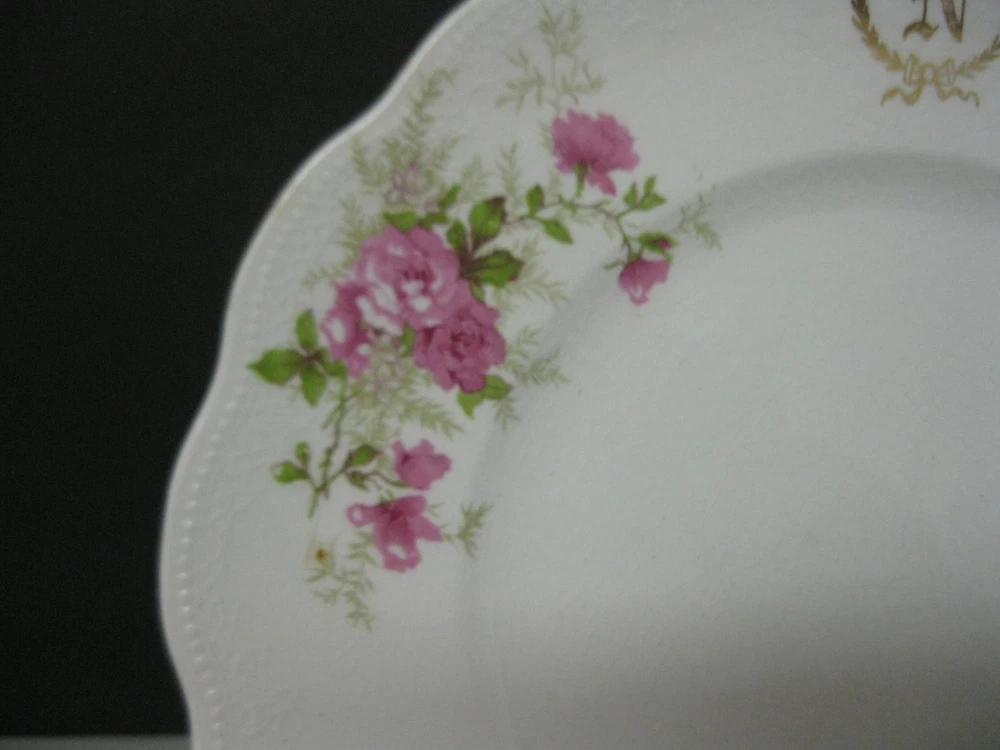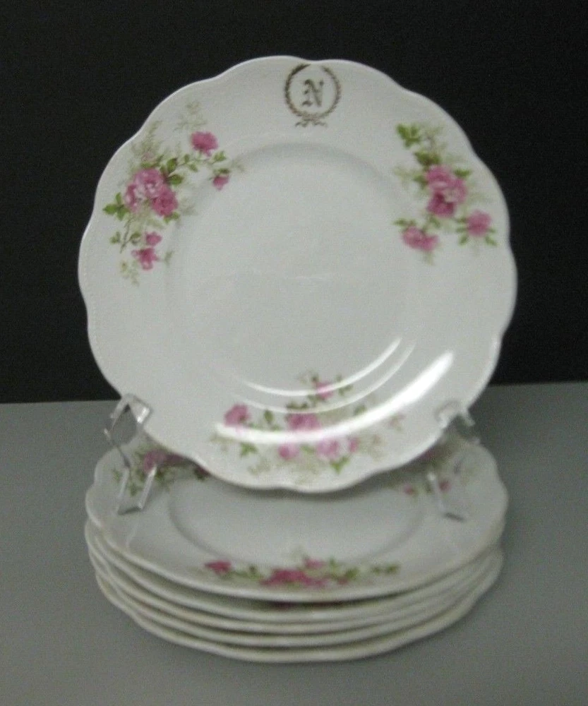 You are bidding on: Homer Laughlin The Angelus Imperial Faience Salad plates Lot of 6 This antique Homer Laughlin Imperial Faience Pattern is from the early 1900's. The pattern was featured in the Sears & Roebucks No. 117 catalog from 1908(see last photo). The pattern was discontinued in 1920's. The pattern features a scalloped edge with embossed lace design on a white china. It has bloom roses and rose buds with a background of green leaves and foliage around the rim extending towards towards the center, and gold accents. This set has the monogram N in a gold laurel leaf. It is marked in gold Imperial Faience and Homer Laughlin The Angelus in a green back stamp. Measurements: 8" in diameter. They are antique preowned items. There is no chips, cracks or stains. There is crazing to the glaze on all the plates. They are monogrammed with the letter N. They came from an estate, you can check out the other pieces in this pattern in my eBay store. Please see all photos and ask any qu estions BEFORE purchasing. Note: Ad in last photo is not included in the listing, it is just for information. "FREE SHIP PING" Please check back on a regular basis, as I list new items daily! HAPPY BIDDING! 9218/db warehouse 11/8/24db