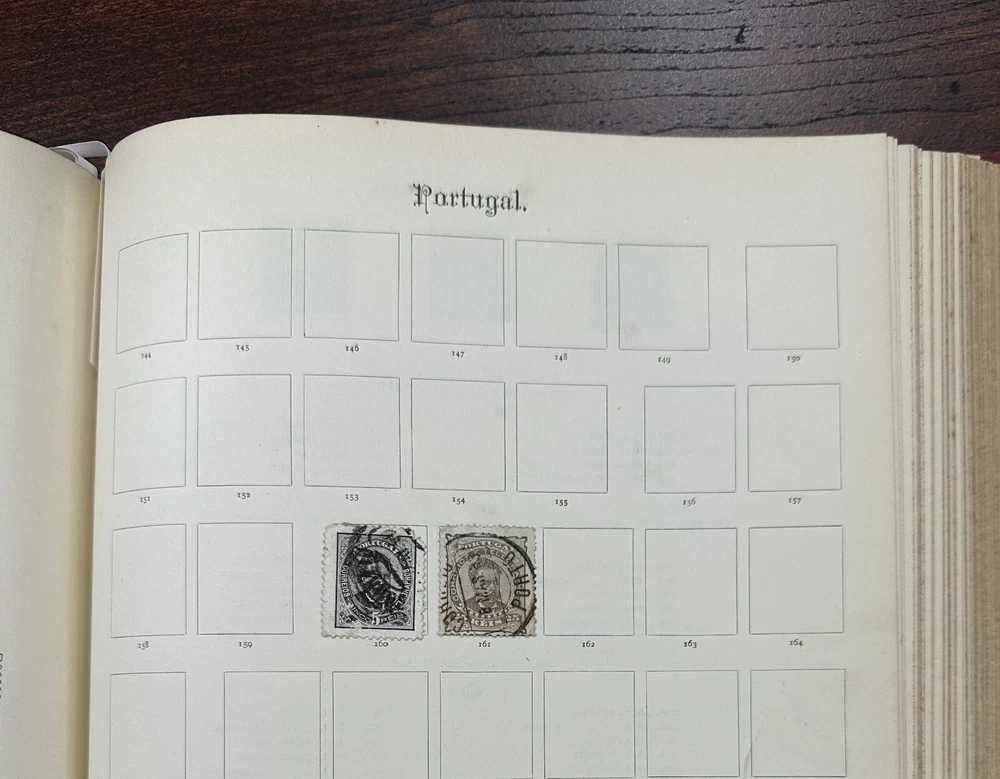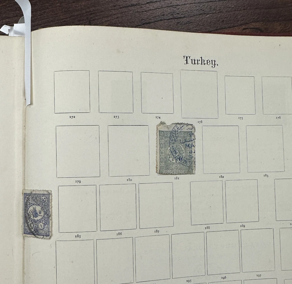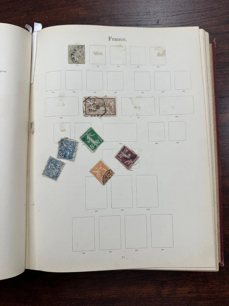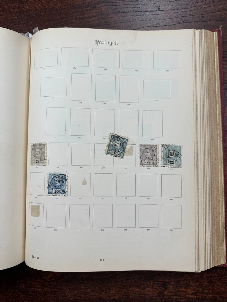 A Stanley Gibbons Imperial Postage Stamp Album (Europe and Possessions) in good condition. There are 100 or so stamps hinged and loose in the album. Most appear to be in good to fine condition. They have not been checked. There are more stamps than what is pictured, but most of the album is empty. Estimated CV of stamps is over $750.00. R