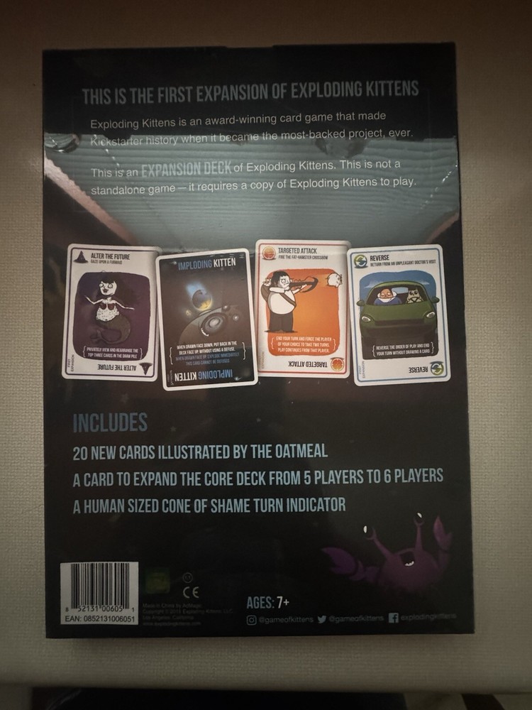 Product Dimensions:12.2 x 8.7 x 0.7 inchesBrand:Exploding Kittens LLCInternational Shipping:This item can be shipped to select countries outside of the U....Country/Region of Manufacture:ChinaItem Weight:4.8 ouncesManufacturer recommended age:7 years and upShipping Weight:4.8 ouncesMPN:EKG-1EXPDomestic Shipping:Currently, item can be shipped only within the U.S. and to APO...Item model number:EKG-1EXP