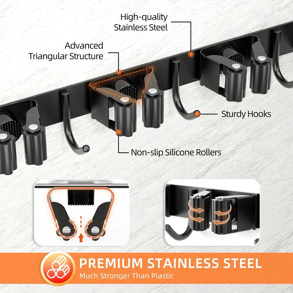 Broom Holder Wall Mount 2 Pack Improved Broom Holder Non-slip Mop and Broom H... MORE BENEFITS 【Remarkable Organizer】DOMAXCAI new version broom holder wall mount is designed with 4 racks and 5 hooks, and each broom organizer have two ways of installation, suitable for all surface, you can easily tidy up piled brooms, mops, brushes, dishcloths, rakes, garden tools and more, get your home & life in order, let you have a more comfortable living space. 【Super Anti-Slip Design】Our mop holder wall mount is designed with advanced triangle structure and soft silicone rollers, provided strong grip, No need to worry about the broom and dustpan falling off after being stained with water. 【Outstanding Stable】These broom hangers for wall are made of heavy duty SUS-304 stainless steel, premium silicone and strong glue adhesives, which design with remarkable stable and long-lasting, anti-resistant and anti-corrosion. 【Simple & Humanized Installation】The broom hangers for wall have two ways of installations for different surfaces, you can easy to stick the mop holder in the self adhesive way for smooth surface, and screw drilling for the rough surface, it is recommended the screw drilling for weighty hanging. 【Extremely practical】DOMAXCAI 2 pack broom and mop organizer wall hanging are perfect organization tool in the closet, garage, laundry room, kitchen, bathroom. Not only for hanging mops and brooms, but also for hanging various small things, such as repair tool, umbrella, kitchen supplies, toilet brush etc. SHIPPING We offer FREE shipping on all orders! We ship within 3 business days of payment, usually sooner We use a selection of shipping services such as UPS, FedEx, USPS etc We only ship to the lower 48 states. PAYMENT We accept all payment methods accepted by eBay. CUSTOMER SERVICE We try our best to make sure every customer is completely satisfied. If there's a problem, feel free to message us! We're happy to help. ENDLESS-OPTIONS-STORE