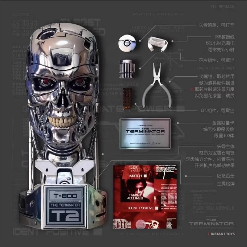 In Stock Terminator T2 T800 ENDOSKELETON 1/1 Life Size Skull Statue Light Eyes Character: T800 Series Title: Terminator Size: 16.5*20*40cm Material: Polystone plating ★ 100% Brand new & High quality 1 cm=0.39Inch/1 inch =2.54 cm Package:As Picture shows Please allow 1-2cm differs due to manual measurement. Note: The real color of the item may be slightly different from the pictures shown on website caused by many factors such as brightness of your monitor and light brightness. If you are not completely satisfied with your purchase, please contact us immediately through eBay message so that we can respond promptly. We strive to provide exceptional products and service to our customers and your opinion is very important to us. We will reply your email as soon as possible, but please kindly allow 24 hours for us to response. Thanks for your Understanding and Coordinate. Thank you for your coming my shop, enjoy your shopping~ Payment Delivery details Terms of sales About us Contact us Payment Payment must be made within 5 days after you won my items. Delivery details We ship package via speedPAk, if you want to choose faster shipping way like EMS, DHL ..Please contact us ASAP. Terms of sales Hope that you will love my items. If you are not satisfied with them, Please Contact me within 7 days and I will arrange the exchange or refund your 100% money. Any problems can be resolved without leaving a negative/neutral feedback. I am willing to make every purchasing a happy one. About us Customers' Satisfaction is our goal.Any problem just feel free to contact us first.Thank you very much. Contact us Happy communication, happy shopping experience! Please Contact us before leave the feedback and open dispute on eBay ! Movie Terminator Character T800 Occasion All Occasions Brand Instant Toys Material Polystone Scale 1:1 (Life Size) MPN Does not apply TV Show Terminator Type Action Figure Theme TV, Movie & Video Games Country/Region of Manufacture China Vintage No Year Manufactured 2024 Unit Quantity 1 Unit Type Unit