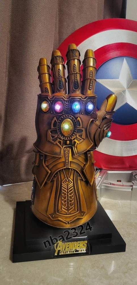 DESCRIPTION PAYMENT SHIPPING RETURN POLICY CONTACT US SECURE PAYMENT Payment We accept payment by any of the following methods: PayPal Please pay as soon as possible after winning an auction, as that will allow us to post your item to you sooner! Shipping In the very unlikely event that your item is lost or damaged during post, then WE are responsible and will issue either a full refund or replacement. Returns If you are not 100% satisfied with your purchase, you can return the product and get a full refund or exchange the product for another one, be it similar or not. You can return a product for up to 30 days from the date you purchased it. Any product you return must be in the same condition you received it and in the original packaging. Please keep the receipt. In Stock Thanos Infinity Gauntlet 1:1 Scale Full Metal Wearable Marvel Avengers PACKAGE INCLUDED: In Stock Thanos Infinity Gauntlet 1:1 Scale Full Metal Wearable Marvel Avengers DESCRIPTION: HCMY 2018 Production - Thanos Infinity Gauntlet Material: External armor made of alloy, internal silicone lining The length from arm to fingertip is approximately 40CM Joint mobility, wearable Gift display stand, vertically placed at a height of approximately 45CM Unlimited gloves with a net weight of approximately 2.5 kilograms Contact Us Email: Please Use E-Bay's E-mail System We will try our best to get to you as soon as we can!