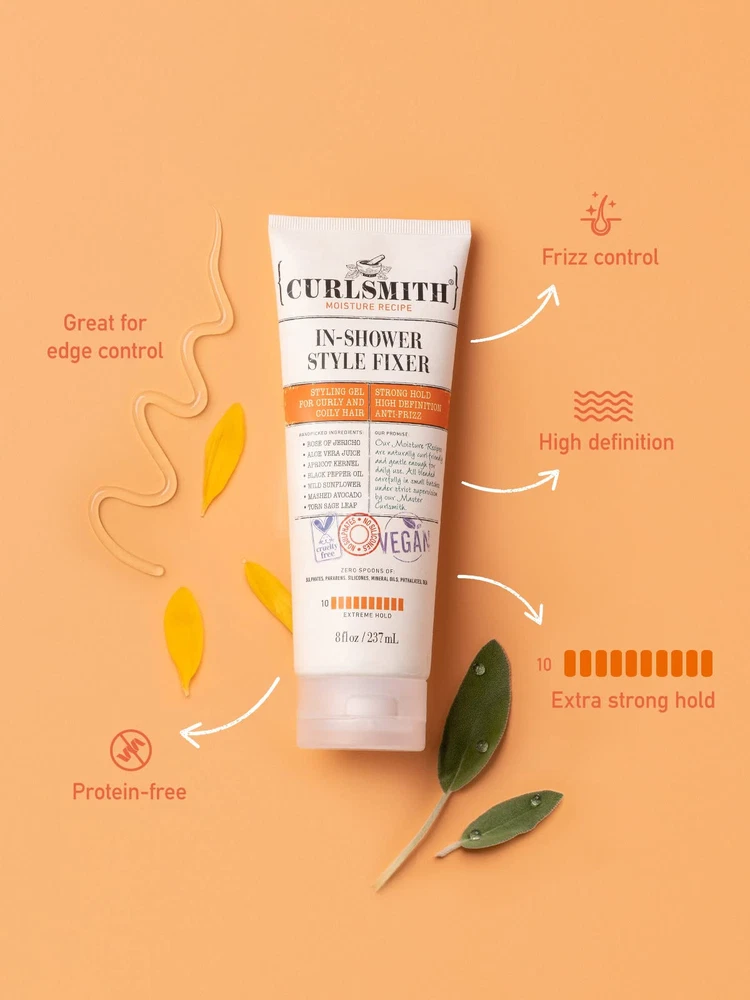 MOISTURE AND EXTREME HOLD - In-Shower Style Fixer tames frizz and flyaways, giving extreme hold and definition - without drying hair. HOW THE HAPPENS - Use on soaking wet hair, right out the shower. Smooth down the length of the hair, using the “praying hands” method. Scrunch gently upwards, then air dry or diffuse. When fully dry, scrunch again to break the cast to be left with soft, bouncy, defined curls. WHAT MAKES US DIFFERENT - Inspired by generations of homemade hair remedies, blends fresh curl-loving foods with kitchen cupboard staples and rare natural ingredients to make premium products that really work. Healthy ingredients, professional results, no compromise. NO NASTIES - All our products have zero spoons of Sulphates, Silicones, Mineral Oils and Phtalates. Plus they're Curly Girl Friendly, they’re 100% Vegan and Cruelty Free. REAL RESULTS - We believe the proof is in the pudding and it looks like our customers believe that too: "Wow best non-ever" "Amazing curl product" "I've searched my whole life for a product like this!".