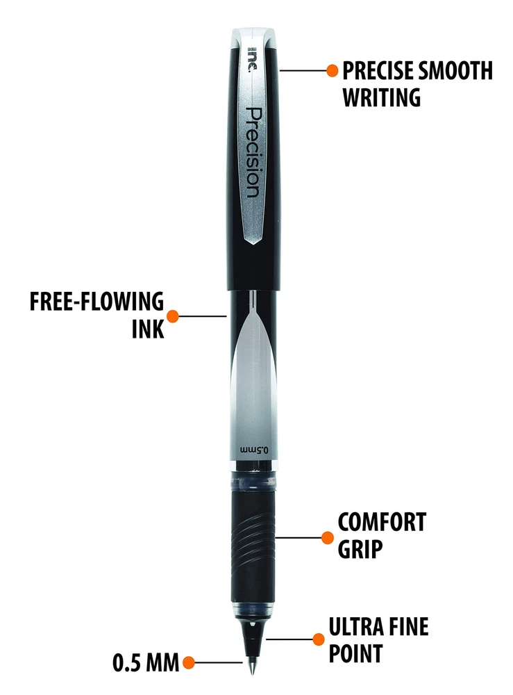 Inc. R2 Precision Rollerball Pens - 0.5 mm Ultra Fine-Point Pen Set With Comfort Grip for School, Office, Writing, and Journaling, 12 Pack, Black Ink Product Details Color: Black Style: Precision - 0.5 mm Brand: Inc. MPN: Test_Parent_Sku UPC: 724328166582 EAN: 0724328166582 Brand: Inc. Writing Instrument Form: Roller Ball Pen Color: Black Ink Color: Black Age Range (Description): Adult Manufacturer: Inc. Brand: Inc. Item Weight: 6.7 ounces Product Dimensions: 5.7 x 6.9 x 0.7 inches Item model number: Test_Parent_Sku Color: Black Closure: Snap Grip Type: comfort grip,ergonomic Material Type: Rubber Number of Items: 12 Size: 1 Count (Pack of 12) Point Type: Ultra Fine Line Size: 0.5 Millimeters Ink Color: Black Manufacturer Part Number: Test_Parent_Sku Date First Available: April 26, 2019 GO WITH THE FLOW: R2 Precision Rollerball Pens have a 0.5mm ultra fine-point tip and vibrant saturated ink flow that is perfect for daily writing, tracing, outlining, journaling, sketching, and annotating AFFORDABLE VALUE PACK: Our 12-pack of black roller pens is a convenient and cost-effective way to keep your home, office, classroom, supply cabinet, or desk stocked and organized SMOOTH COMFORT GRIP: Designed for the avid writer, these ergonomic black pens have a soft rubberized grip that gives you comfort and control while eliminating nagging hand pain and fatigue CLEAN SKIP-FREE LINES: With a controlled free ink flow, these gliding rollerball pens create ultra-crisp, clean lines, perfect for all your personal and professional endeavors YOURS, TRULY: For meeting notes, homework, handwritten checklists, after school art projects, and more, these long-lasting, multipurpose rolling pens add a personal touch to your daily tasks R2 Precision Rollerball Pens Whether you’re working, studying, or mastering your daily checklist, love is in the details! R2 Rollerball Pens glide effortlessly over notebooks, cards, and paper, yielding a vibrant saturated ink flow and crisp, clean lines. Whether you’re sketching, taking notes, or filling out forms at work, these multipurpose pens help you cruise through your tasks in style. Unbeatable Value Our durable bulk value pack comes with 12 long-lasting black rollerball pens. Stock your desk, home office, business, supply cabinet, backpack, or purse to stay organized and efficient as you tackle your to-do’s. Each pen is crafted with a comfortable rubberized grip that eliminates nagging hand pain and fatigue. From avid writers and artists to busy workers and students, this set is perfect for all your personal and professional endeavors. Get Creative R2 Precision Rollerball Pens are a reliable and practical home and office staple. Crafted to give you extra control and a smooth, sleek feel as you write, sketch, or sign, our 0.5 mm point, ultra fine tip pens are made for writing, outlining, drafting, designing, tracing, journaling, and so much more. Whether you’re checking boxes or writing poetry, find your focus, get in the flow, and add your own unique flair to the daily grind.