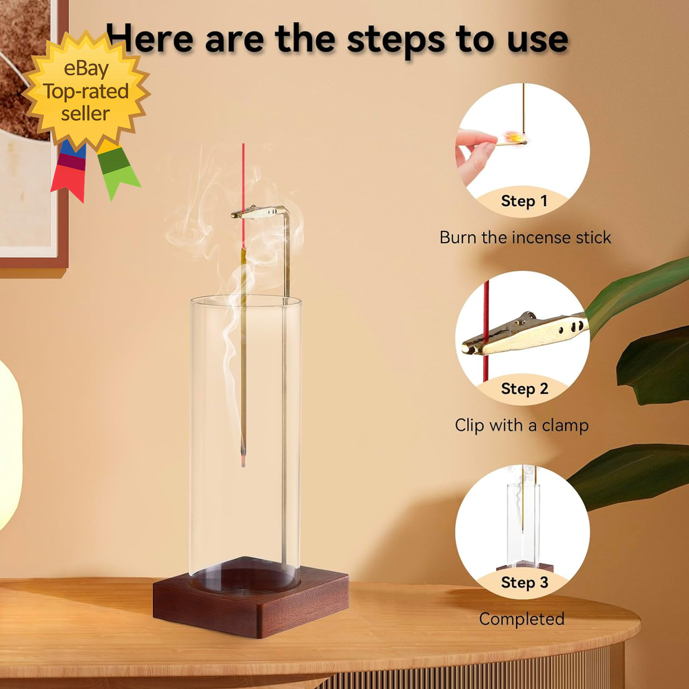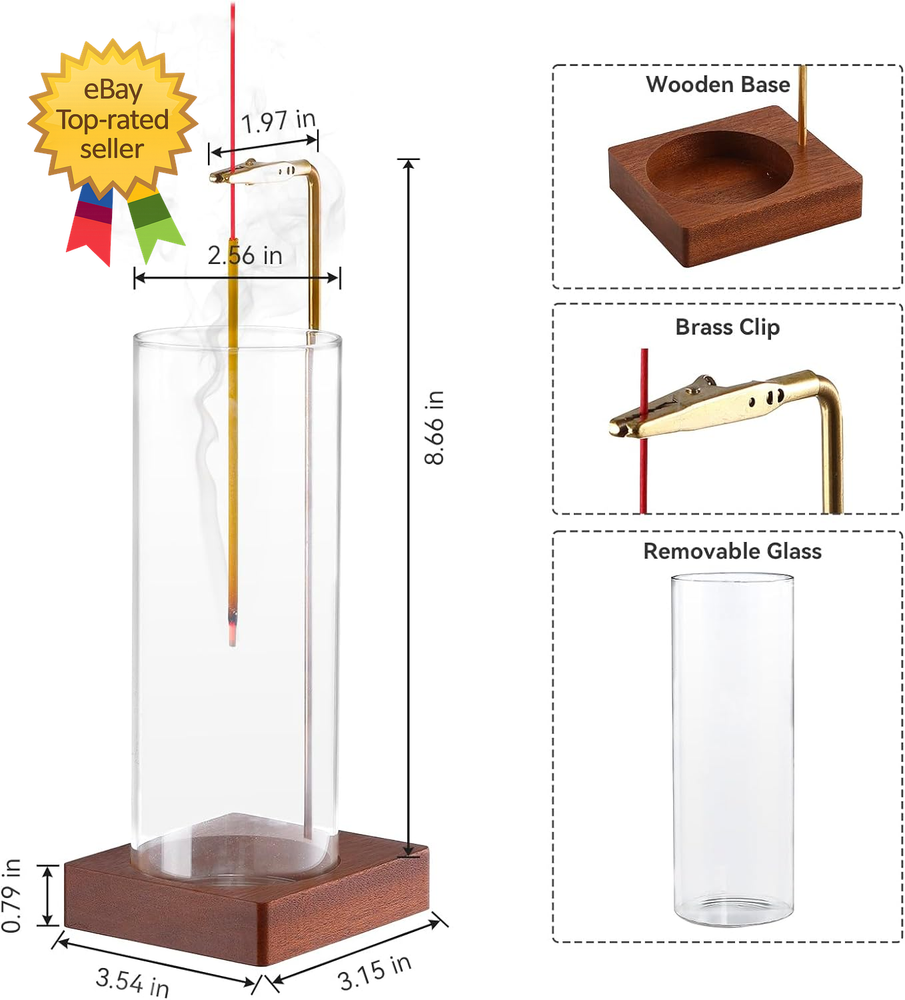 Store New Arrivals Add to Favorite View Feedback Contact Incense Holder for Sticks Insence Stick Holder Ash Catcher with Removable Glass Description Color Brown Product Dimensions 3.54"L x 3.15"W x 9.45"Th Material Brass Item Weight 10.5 ounces Size Upside Down Brown ๐๐ฉ๐ ๐ซ๐๐๐๐ ๐๐๐ซ๐ฌ๐ข๐จ๐ง ๐๐ฌ๐ก ๐๐๐ญ๐๐ก๐๐ซ: A transparent ash catcher with a sealed bottom is placed on a customized walnut wood base, and making it less likely to tip over. The ash catcher glass bottle is made of high temperature resistant material, which helps to prevent incense matches from splashing and ashes can't escape. ๐๐ง๐ง๐จ๐ฏ๐๐ญ๐ข๐ฏ๐ ๐๐๐ฌ๐ข๐ ๐ง & ๐๐ฉ๐ฉ๐ฅ๐ข๐๐๐ญ๐ข๐จ๐ง: This incense holder can be used in many scenes, such as meditation rooms, yoga studios, spas, offices, bedrooms, living rooms, to provide you with a pleasant fragrance, closing your eyes and taking a deep breath can relax your body, and make you feel like you are immersed in nature. ๐๐๐ซ๐ฒ ๐๐๐ฌ๐ฒ ๐ญ๐จ ๐๐ฌ๐: There is a clip with an alligator head clip at the top of the incense stick holder, which has a super strong grip and can easily hold most incense sticks. After clipping in the incense, adjust its angle so that it is in the center of the glass bottle, and allow the smoke to slowly diffuse out. ๐๐๐ญ๐๐ซ๐ข๐๐ฅ๐ฌ:We have carefully selected a walnut wood tray combined with a brass stand. The tray has a groove on the bottom that is specifically designed to hold the glass bottle that catches the incense ash. The removable ash catcher is easy to clean after each use, ensuring a hygienic and incense experience. ๐๐ข๐๐ญ ๐๐จ๐ซ ๐๐จ๐ฎ๐ซ ๐ ๐๐ฆ๐ข๐ฅ๐ฒ & ๐ ๐ซ๐ข๐๐ง๐:This incense burner is not only a great addition to office and home decor, but it also adds a peaceful atmosphere to any room. ABOUT US We offer the best prices around on high quality products. Our E-store includes media such as books, movies, music and games while offering electronics, toys, sporting apparel, clothing, tools, general home, garden items and more. SHIPPING We are always working hard to ensure your package arrives as soon as possible. Please understand that some factors like weather, high postal traffic, and the performance of shipping companies are outside of our control. We offer free shipping to the lower 48 states and ship within 2 business days of payment, usually sooner. We do not accept P.O. Boxes. Please provide a physical address. For shipping outside of the continental USA, we only use eBay's Global Shipping Program.The item is shipped to KY and then sent to the rest of the world. International customers are responsible for all duties and taxes. Continue to check out in order to calculate costs for shipping the item to your country. Messages regarding eBay's Global Shipping Program MUST be directed at eBay EXCLUSIVELY. RETURNS We offer a 30-Day Return Policy on items which you are not completely satisfied with. You have the option for a full-refund or an exchange of the item. No returns are available on items shipped outside of the USA. PAYMENT We accept PayPal. CONTACT US This page content is yet to come Please ad us to your favorite seller and visit again later Thank You CUSTOMER SATISFACTION We try our very best to make sure every customer is completely satisfied. If there's a problem, message us! We're happy to help.
