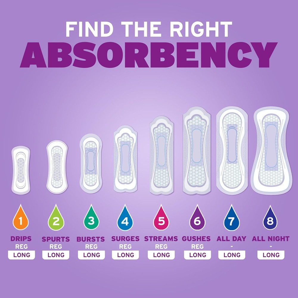 Incontinence & Postpartum Pads for Bladder Leaks, 3 Drop Light Absorbency, Regular Length, 54 Count, Packaging May Vary INCONTINENCE PADS: 54 incontinence and postpartum bladder leak pads, 3 Drop Light Absorbency, regular length (54 pads total) INSTANT ABSORPTION: pads for women instantly absorb and rapidly lock away more wetness than the leading period pad for amazing dryness UP TO ZERO ODOR: Each incontinence pad is made with odor-reducing material and helps control odor for up to 12 hours WETNESS PROTECTION: These women’s incontinence pads are made with a moisture-wicking top layer designed to feel dry throughout wear UP TO ZERO LEAKS: Incontinence Pads for Women are 25x drier than the leading period pad and offer up to 12 hours of bladder leak protection SHAPED TO PROTECT: Our women's incontinence pads have a ContourFit design that is softly curved and has a wide front and back to help keep you comfortably protected Up to 100% clean, dry and fresh protection SATISFACTION GUARANTEEd* (*Buy by 12/31/25; requests must be postmarked w/in 30 days of purchase. Online access & orig. receipt/UPC req’d. Limit 1/household. Restrictions apply. Details at website) adult incontinence products are HSA/FSA-eligible in the US (check with your provider for coverage details); product and packaging may vary Enjoy up to 100% clean, dry and fresh protection SATISFACTION GUARANTEEd* with Incontinence & Postpartum Pads for Bladder Leaks. Unlike period pads, which are meant for menstrual needs, pads are designed to offer protection against light bladder leaks. These disposable incontinence pads instantly absorb for up to zero odor and rapidly lock away more wetness** for amazing dryness. In fact, incontinence pads for women are made with odor-reducing material and helps control odor for up to 12 hours. They also come with a moisture-wicking top layer that is designed to feel dry throughout wear. Plus, our pads for women are 25x drier than the leading period pad, offer up to zero leaks, and deliver up to 12 hours of protection. Each bladder leak pad features a ContourFit design, making it softly curved to help prevent bunching and has a wider front and back than in the middle to help keep you comfortably protected. Incontinence & Postpartum Pads for bladder leaks are available in 3 Drop Light, 4 Drop Moderate, 5 Drop Maximum, 6 Drop Ultimate, 7 Drop Ultra, and 8 Drop Overnight absorbencies. Shop for discreetly by having it shipped directly to your door or pick up curbside. adult incontinence products are HSA/FSA-eligible in the US — check with your provider for coverage details. (*Purchase by 12/31/25. All requests must be postmarked within 30 days of purchase. Online access required. Limit 1 per household. receipt/UPC required. Restrictions apply. See website for details) (**vs the leading period pad).