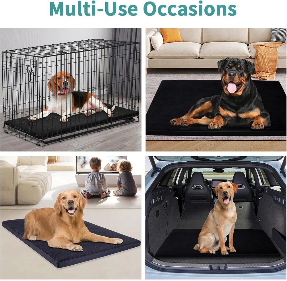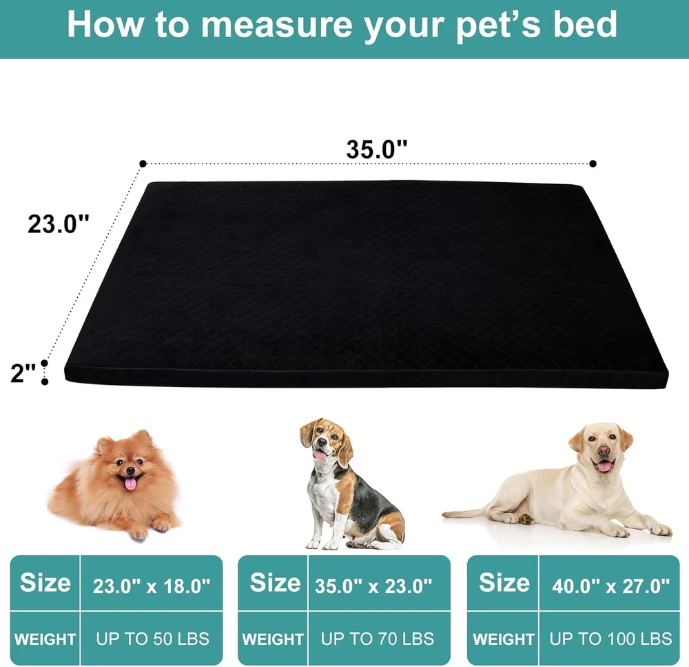 Indestructible Dog Beds, Chew Proof 35"L x 23"W x 2"Th, Black Product Details Item Weight: 3.63 pounds Manufacturer: Aulase Country of Origin: China Item model number: GDB02 Item Package Dimensions L x W x H: 18.19 x 12.01 x 4.61 inches Item Dimensions LxWxH: 35 x 23 x 2 inches Brand Name: Aulase Target Audience Keyword: Dogs Directions: For Dog Model Name: Chewproof Dog Bed Color: Black Size: 35"L x 23"W x 2"Th Material: 1680D Oxford, Velvet, High Density Foam Care Instructions: Machine Wash Breed Recommendation: All Breed Sizes Included Components: Dog Bed Specific Uses for Product: Outdoor, Indoor Product Dimensions : 35 x 23 x 2 inches; 3.64 Pounds Item model number : GDB02 Manufacturer : Aulase Country of Origin : China Brand: Aulase Special Feature: Chew Resistant, Washable Cover, Water Resistant Product Dimensions: 35"L x 23"W x 2"Th [Ruggedly Tested - Indestructible Dog Bed] Is your furry friend a relentless digger and chewer? You may need this chew-proof dog bed. It undergoes rigorous testing to prevent all types of dog damage, ensuring unparalleled reliability. This dog mat is made from upgraded bite-resistant fabric, tough and indestructible, able to withstand even the most determined chewers. No more worrying about your dog being left on the floor or a pile of shredded fabric and foam. [Durable & Comfortable]Our dog bed is crafted with a durable 1680D Oxford fabric base, featuring a combination of soft velvet fabric and waterproof layering. It offers a chew-resistant construction for durability while providing a cozy and gentle touch for your furry companion's comfort. [Waterproof & Easy to Clean] The sturdy dog crate mattress is protected by a waterproof liner, keeping the foam safe from spills, water damage, and accidents. Convenient extended zipper design, easy remove the cover in seconds. You can either wash it directly in the washing machine or gently brush it with some detergent for spot cleaning, keeping the dog bed fresh. [Multi Use & Non-slip Bottom] Measuring 35.0"L x 23.0"W, our dog crate mat offers ample space for your puppy to relax and stretch out. The non-slip bottom ensures a secure and stable inside the crate or on the floor, providing peace of mind for both you and your pet. Suitable for a variety of medium dog breeds, like Bulldog, Labrador and Golden Retriever. It offers comfort and security for your beloved canine companion. [Reassuring Training Pad] This dog bed designed to redirect dogs' focus from attacking the bed by providing an extremely high chewing difficulty. For puppies that are particularly fond of chewing beds, placing chew toys on the bed can help divert their attention and train them not to gnaw on the bed.