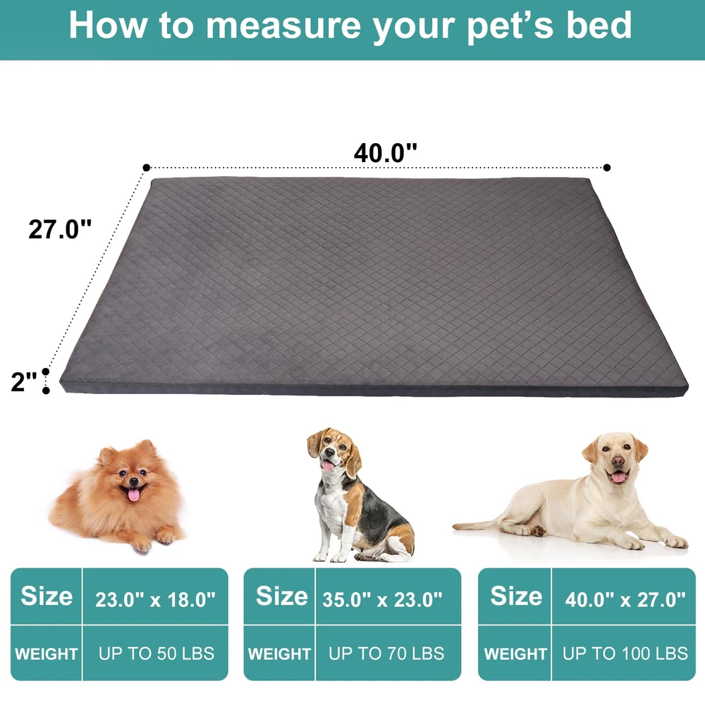 [Ruggedly Tested - Indestructible Dog Bed] Is your furry friend a relentless digger and chewer? You may need this chew-proof dog bed. It undergoes rigorous testing to prevent all types of dog damage, ensuring unparalleled reliability. This dog mat is made from upgraded bite-resistant fabric, tough and indestructible, able to withstand even the most determined chewers. No more worrying about your dog being left on the floor or a pile of shredded fabric and foam. [Durable & Comfortable]Our dog bed is crafted with a durable 1680D Oxford fabric base, featuring a combination of soft velvet fabric and waterproof layering. It offers a chew-resistant construction for durability while providing a cozy and gentle touch for your furry companion's comfort. [Waterproof & Easy to Clean] The sturdy dog crate mattress is protected by a waterproof liner, keeping the foam safe from spills, water damage, and accidents. Convenient extended zipper design, easy remove the cover in seconds. You can either wash it directly in the washing machine or gently brush it with some detergent for spot cleaning, keeping the dog bed fresh. [Multi Use & Non-slip Bottom] Measuring 40.0"L x 27.0"W, our dog crate mat offers ample space for your puppy to relax and stretch out. The non-slip bottom ensures a secure and stable inside the crate or on the floor, providing peace of mind for both you and your pet. Suitable for a variety of large dog breeds, like Rottweiler, Beagle and Shepherd Dog. It offers comfort and security for your beloved canine companion. [Reassuring Training Pad] This dog bed designed to redirect dogs' focus from attacking the bed by providing an extremely high chewing difficulty. For puppies that are particularly fond of chewing beds, placing chew toys on the bed can help divert their attention and train them not to gnaw on the bed.