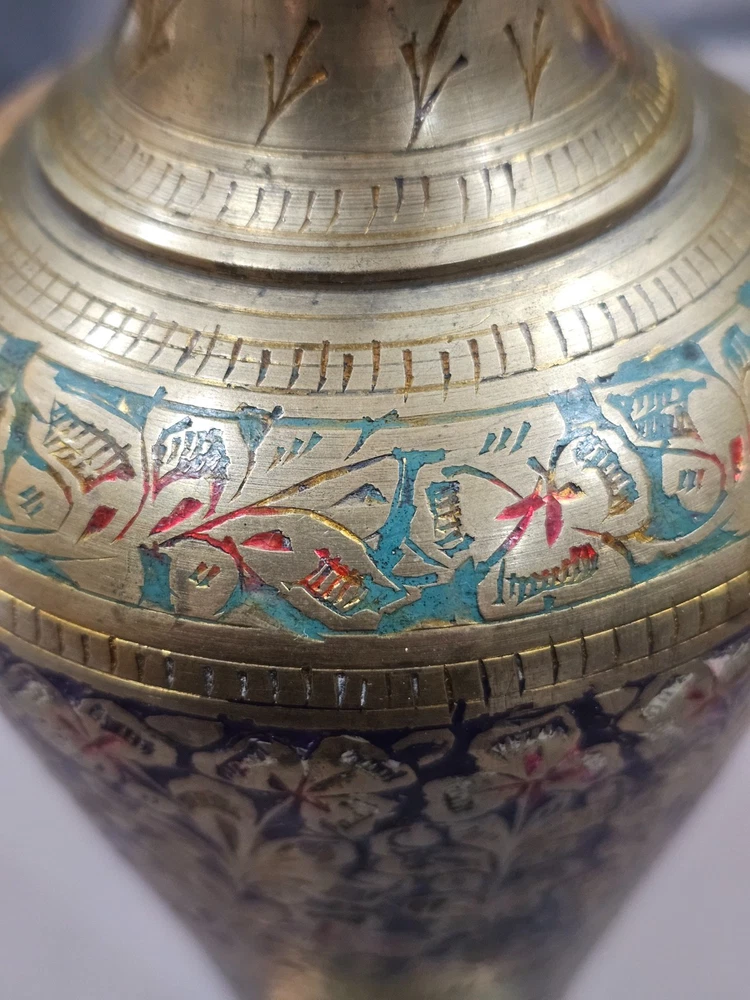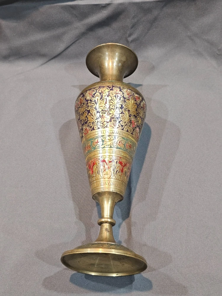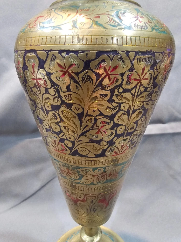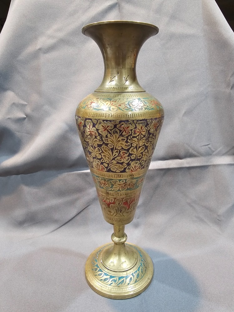 Era: Late 20th Century (1970-1999) Care Instructions: Clean with Damp Cloth Brand: Indian Pattern: Floral Material: Enamel, Brass Occasion: All Occasions Original/Reproduction: Original Glassmaking Technique: Etched Type: Vase Theme: Art Signed: No