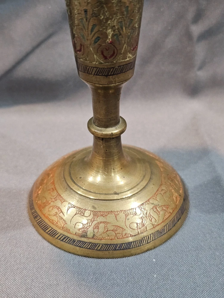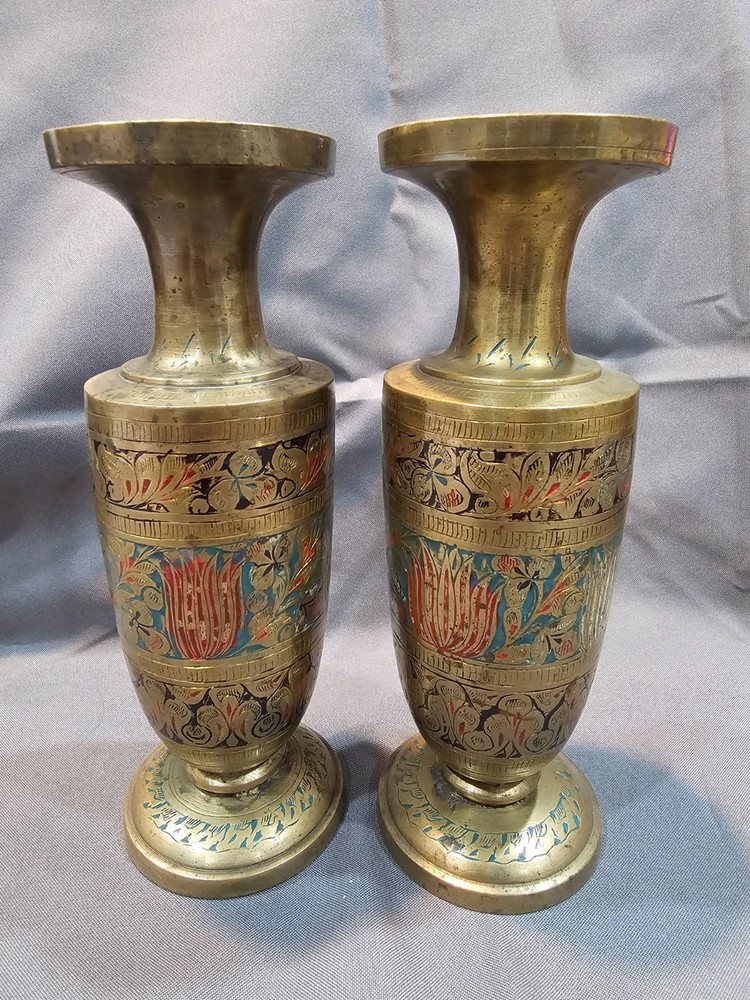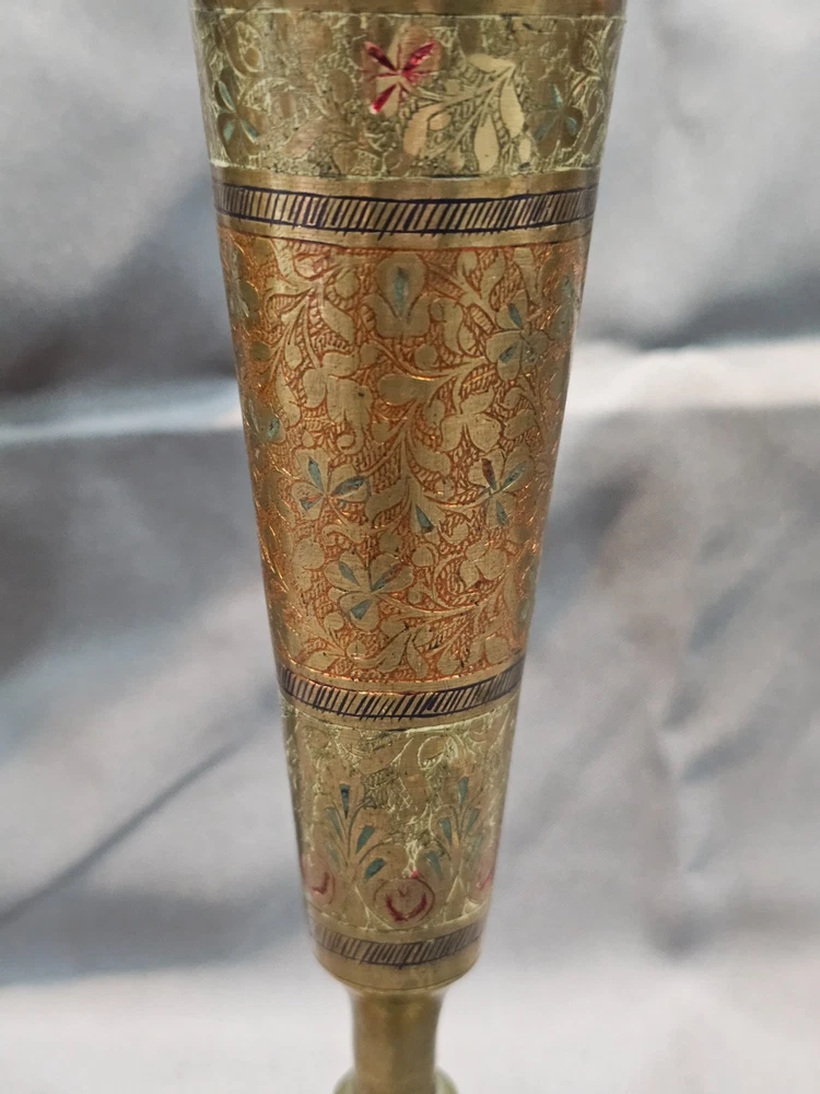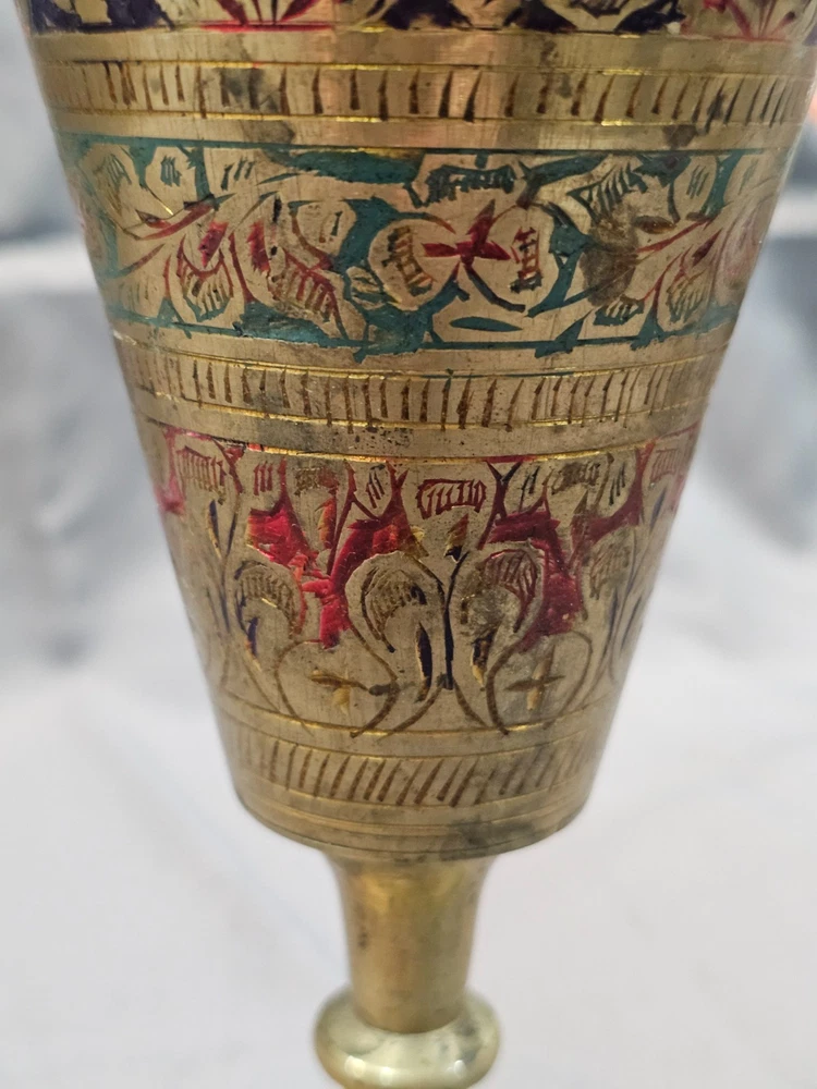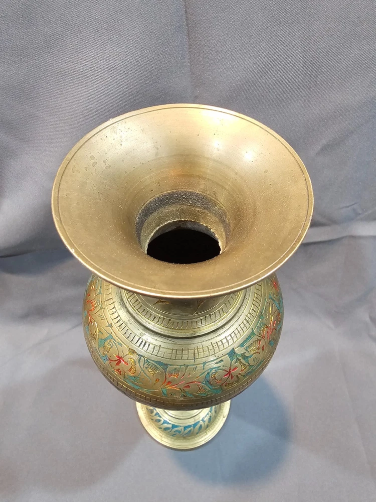 Era: Late 20th Century (1970-1999) Care Instructions: Clean with Damp Cloth Brand: Indian Pattern: Floral Material: Enamel, Brass Occasion: All Occasions Original/Reproduction: Original Glassmaking Technique: Etched Type: Vase Theme: Art Signed: No