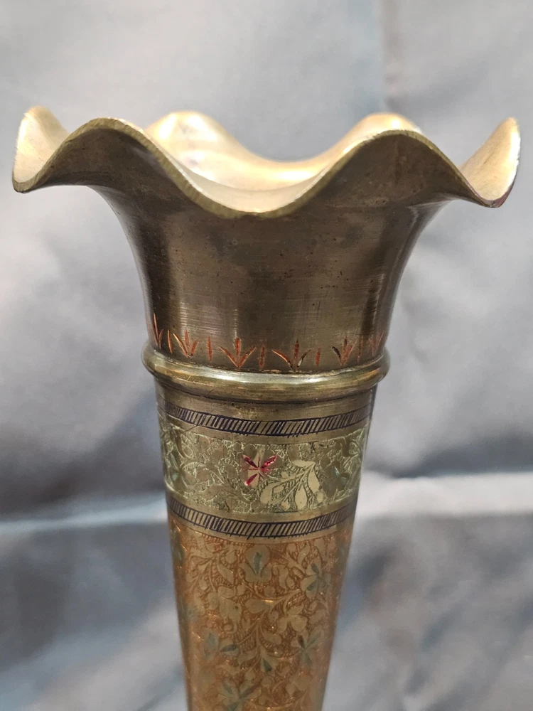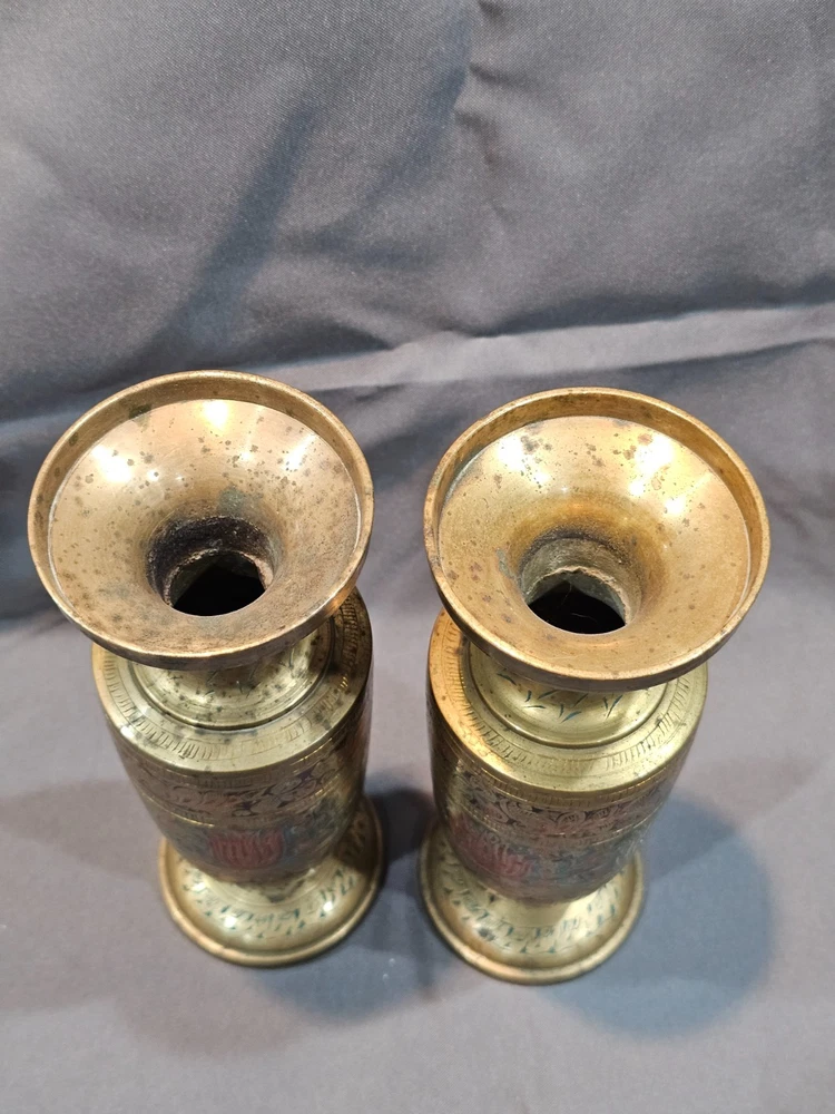 *Sizes are approximate Tall Vase: 12" x 4" Two Smaller: 7.5" x 2.5" Medium Vase: 9" x 3.5" Condition: Please keep in mind these authentic vintage brass items from India and/or China are pre-owned and display various signs of age and use. Each piece may have dents, scratches, discoloration, blemishes, or other imperfections that add to its character and patina. All items are sold in as-found condition; please review photos and descriptions carefully. If you have questions about a specific item’s condition, feel free to ask before purchasing. Please Read Before Buying: · All items are described and photographed to the best of my ability, including any known flaws, defects, or wear. Please review all photos and description details carefully before purchasing, as they represent the exact condition of the item. · Photos are considered part of the description — please zoom in to review them carefully before purchasing. · Item measurements, sizing, or fit are the buyer’s responsibility to confirm before purchase. · Color may vary slightly due to lighting, camera, or screen differences. · This item is sold as described in the listing. Returns are only accepted if the item significantly differs from the description, per eBay’s Money Back Guarantee policy. · The listing price reflects the condition, and all known defects are disclosed. · I cannot guarantee the item’s performance or longevity after purchase, as usage and care are beyond my control. · Only the items shown in the photos are included—no additional accessories, manuals, or boxes unless explicitly stated. · If you have any questions about the item’s condition, size, or features, please ask before placing your order. · As per eBay policy, buyers may still open cases under eBay’s Money Back Guarantee if the item significantly differs from the description. Buyer Advisory for Vintage Items and Antiques: · Please note that the information provided in this listing may be incomplete or inaccurate. It is recommended that you use the details as a starting point to form your own judgment. I appreciate any additional information that could enhance or clarify the history of the objects. · Given the uncertainty surrounding this piece, we advise potential buyers to proceed with caution. The purchase decision rests entirely with you, and you assume any associated risks. · We encourage interested parties to conduct their own research or seek expert opinion before making a purchase decision.