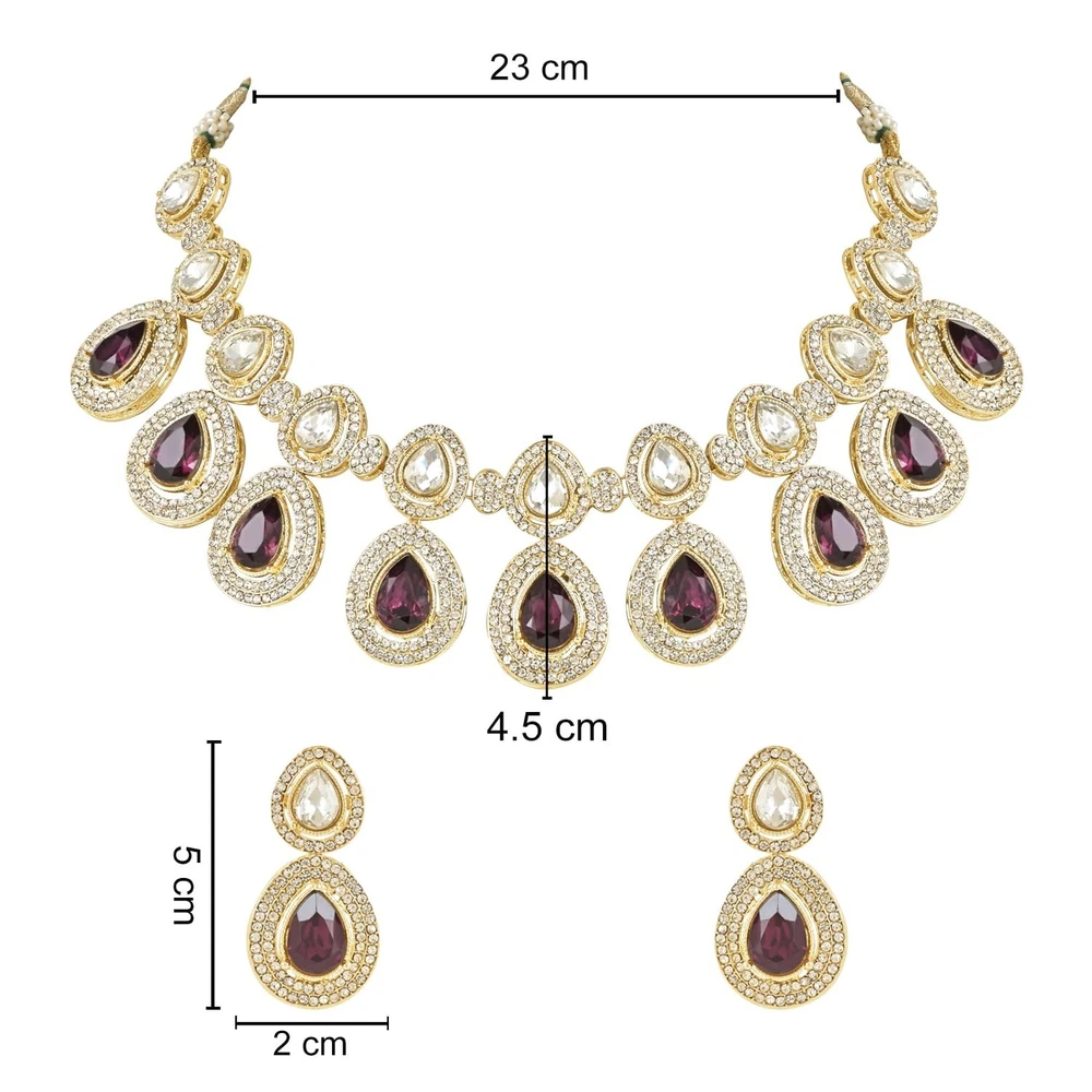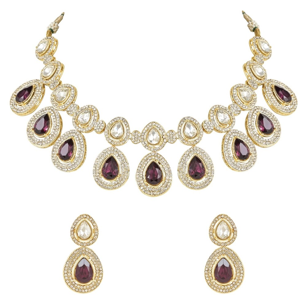 I Jewels Indian Wedding Bollywood Gold Plated Traditional Kundan & Stone Choker Necklace Jewellery With Earrings Set for Women Product Details Color: Purple Brand: I Jewels MPN: IJ371Wi UPC: Does not apply EAN: Does not apply Department : womens Date First Available : September 12, 2023 Brand, Seller, or Collection Name: I Jewels Metal stamp: 18k Metal: alloy Material: Metal Gem Type: No Gemstone Chain: Bead Clasp: Lobster Clasp Ring size: one Size Model number: IJ371Wi Add a touch of regal beauty to your attire with this stunning traditional Kundan and stone studded choker necklace set by I Jewels. Plated in gold, the set includes a beautiful choker necklace, matching earrings. The intricate Kundan and stone work give this set a unique and sophisticated design that is perfect for any formal event or occasion. The high-quality materials and expert craftsmanship ensure that this set will last for years to come, making it a great investment for any jewelry collection. Whether you're dressing up for a wedding, party, or just want to elevate your everyday look, this necklace set is sure to make you stand out. Give yourself or a loved one the gift of regal beauty with this exquisite jewelry set.