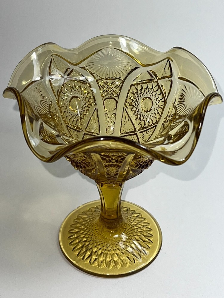 Indiana Amber Depression Glass Goblet Dessert Dish Compote Heavyweight Glass Gold ★ Material: Glass. ★ Approximate Size: 5.5" tall X 5.5" wide. ★ Brand/Maker: Indiana Glass. ★ Color: Amber/Gold. EXCELLENT VINTAGE CONDITION NO CHIPS, CRACKS, SCRATCHES, or CRAZING Photos part of the description