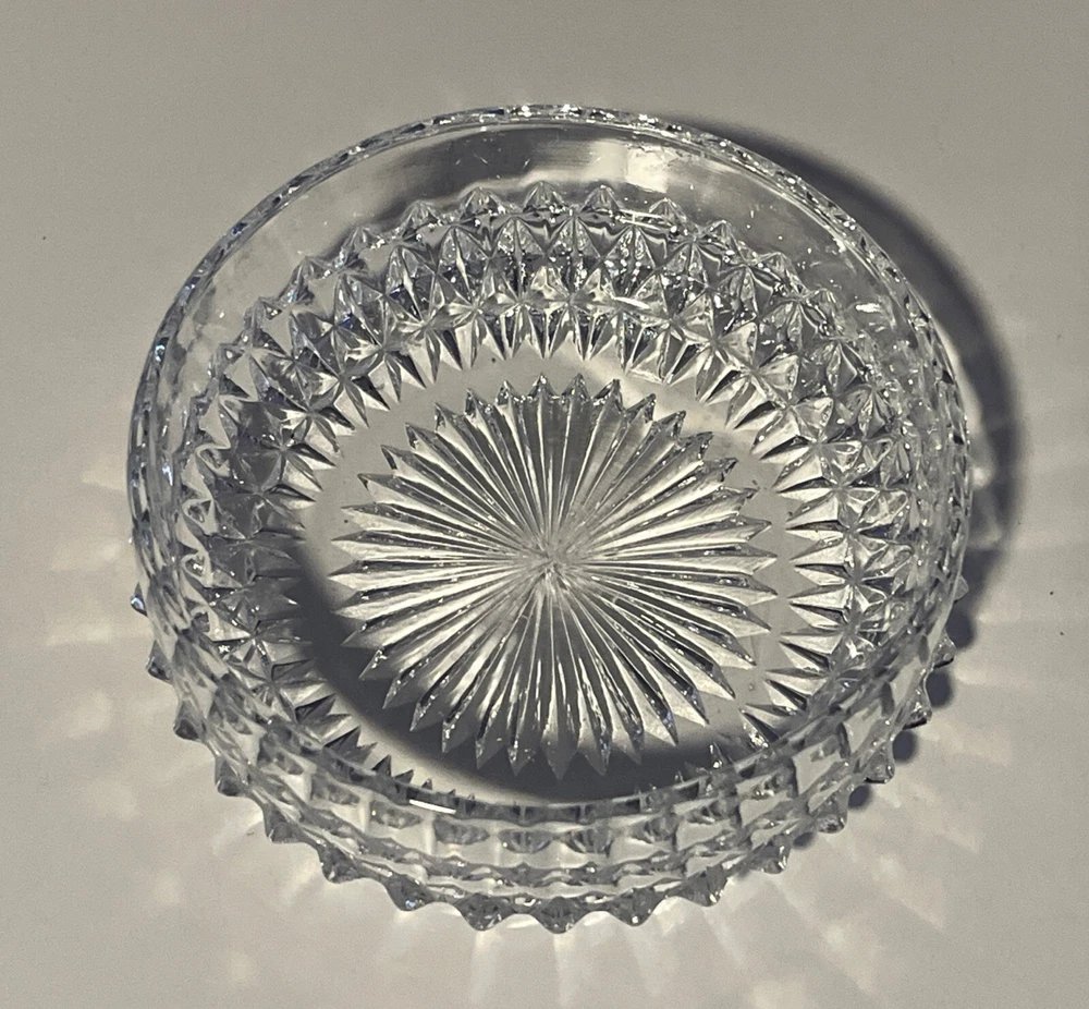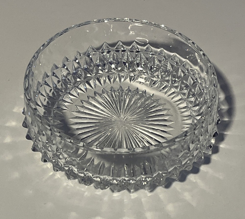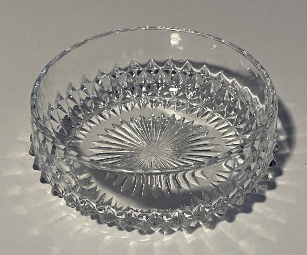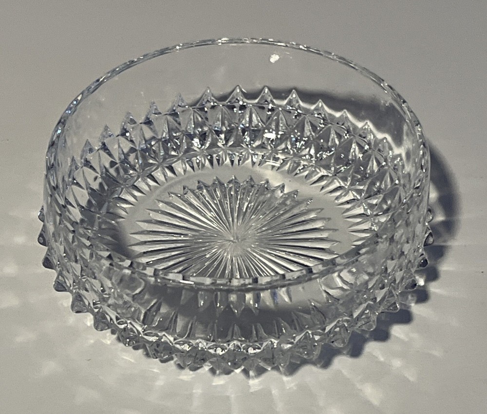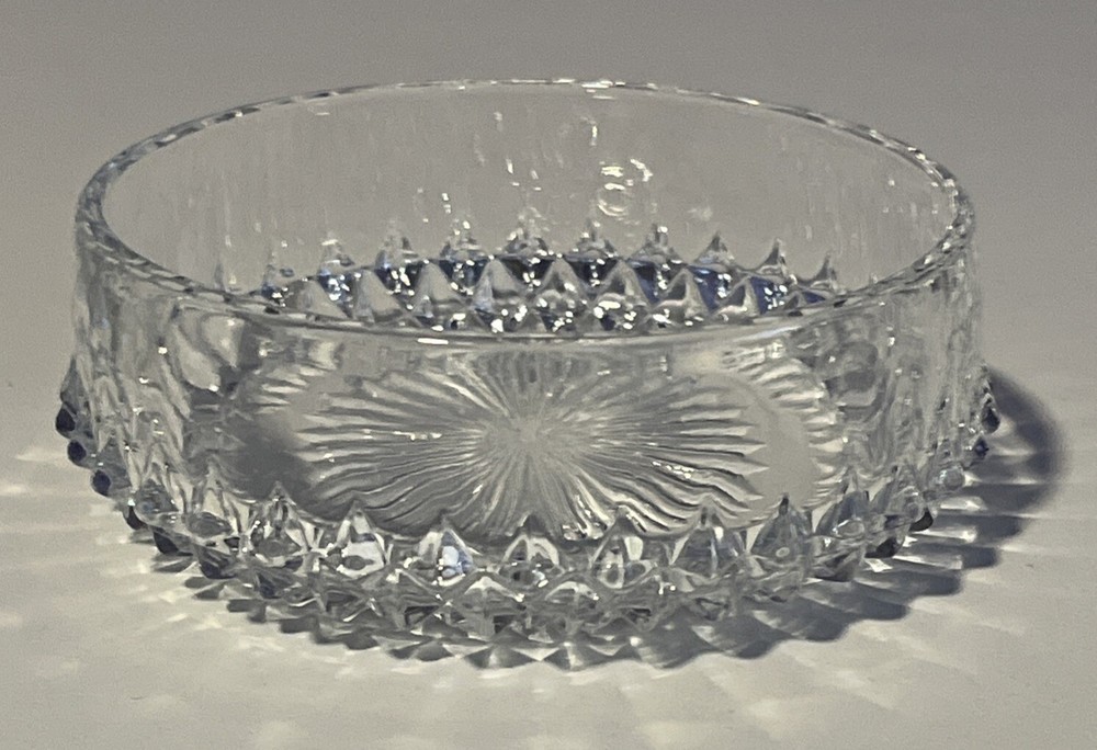 Indiana Glass Clear Diamond Point 4” Fruit Berry Bowl 1.5” tall. No chips or cracks. Perfect for the table serving fruit, small portions or sauces. Would also be cute for trinkets and jewelry or even to hold a small plant pot. Please review all pictures carefully as they are part of the description. Questions are welcome.