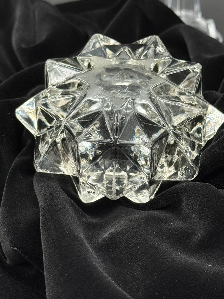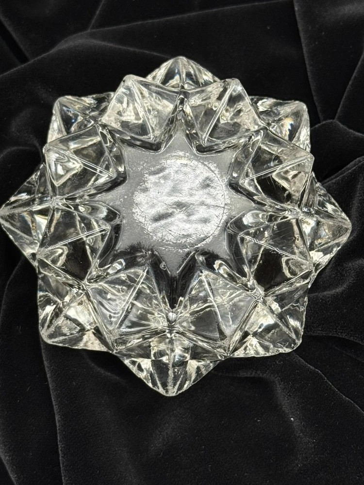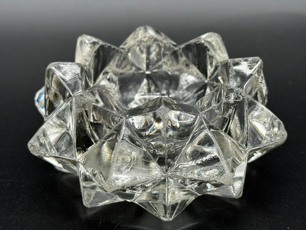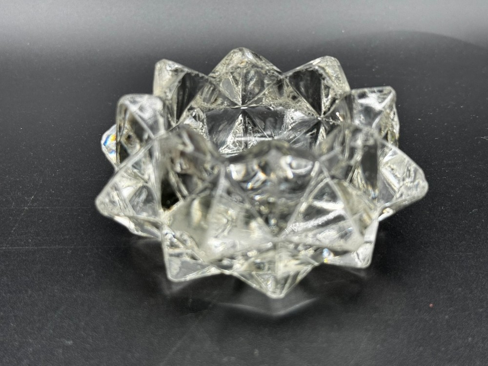 Indiana Glass Starburst Shaped Clear Glass Votive Candle Holder Round inside