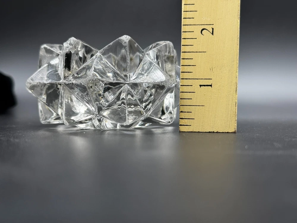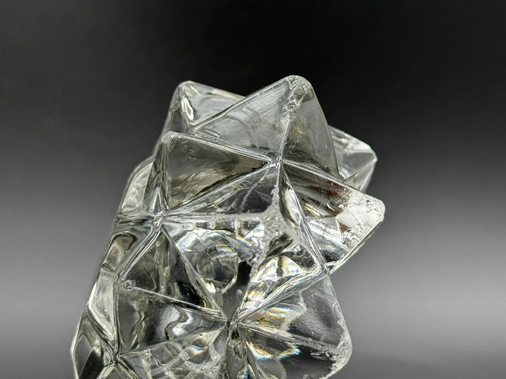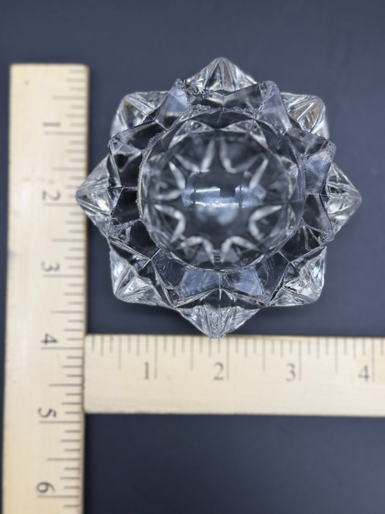 Color: Clear Pattern: Stars Country of Origin: United States Seller Notes: “Many, Many chips, flakes, scratches on tops of the star. Did my best to photograph.” Occasion: All Occasions Subject: Star Number in Pack: 1 Material: Glass Brand: Indiana Glass Finish: Glossy Type: Votive Candle Holders