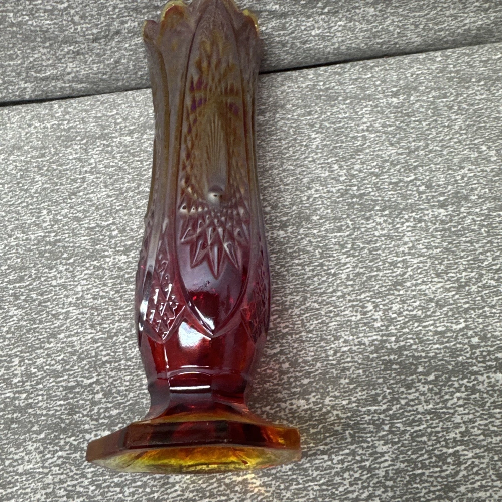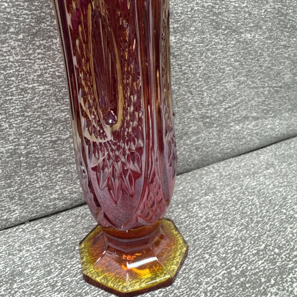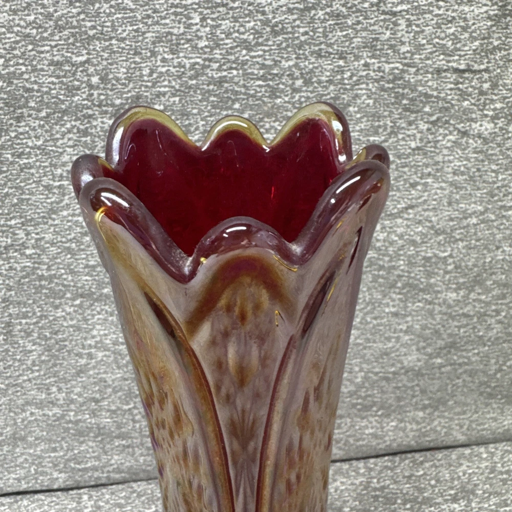 Approx 11” tall red iridescent vase. No chips or cracks beautiful. Please see photos before purchasing