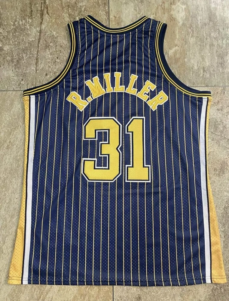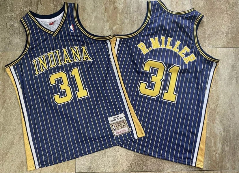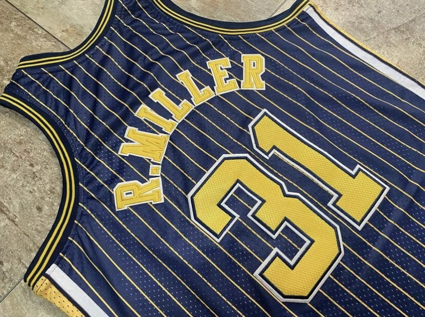 Indiana Pacers Reggie Miller blue Pinstriped basketball retro jersey