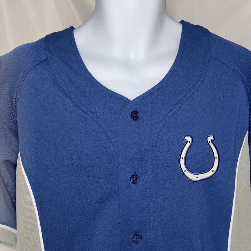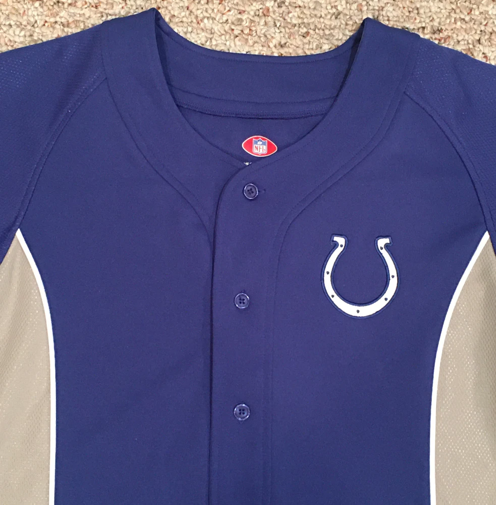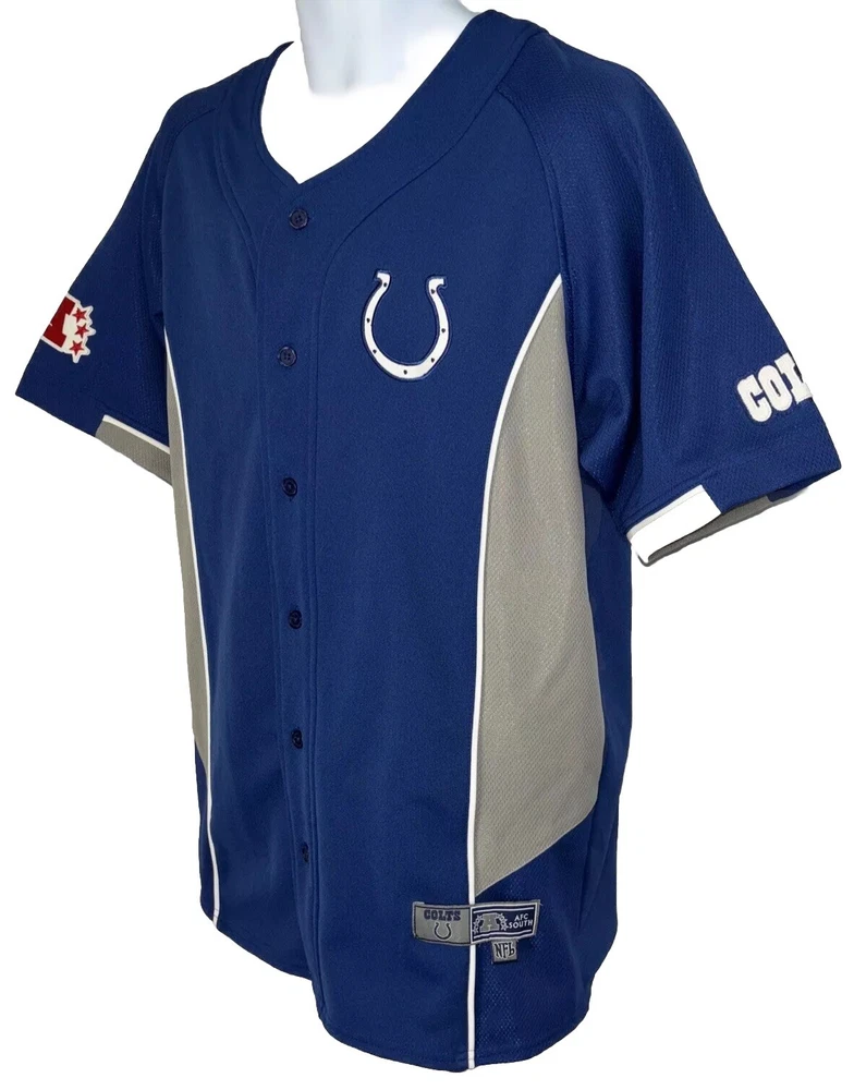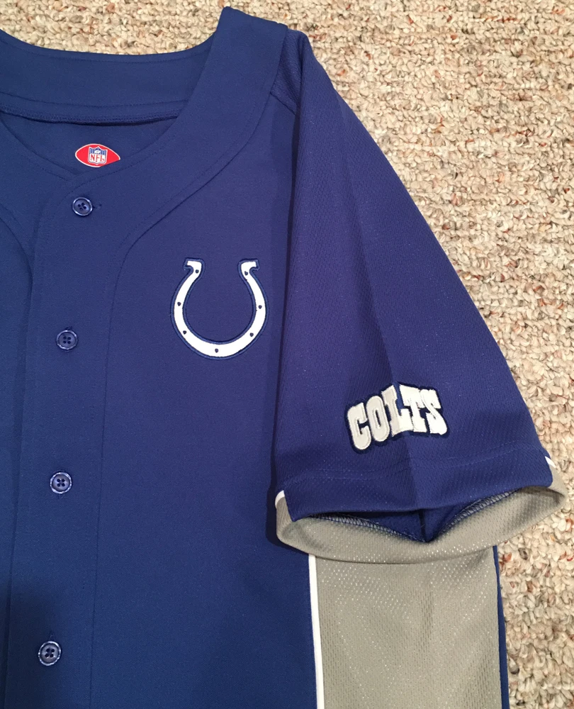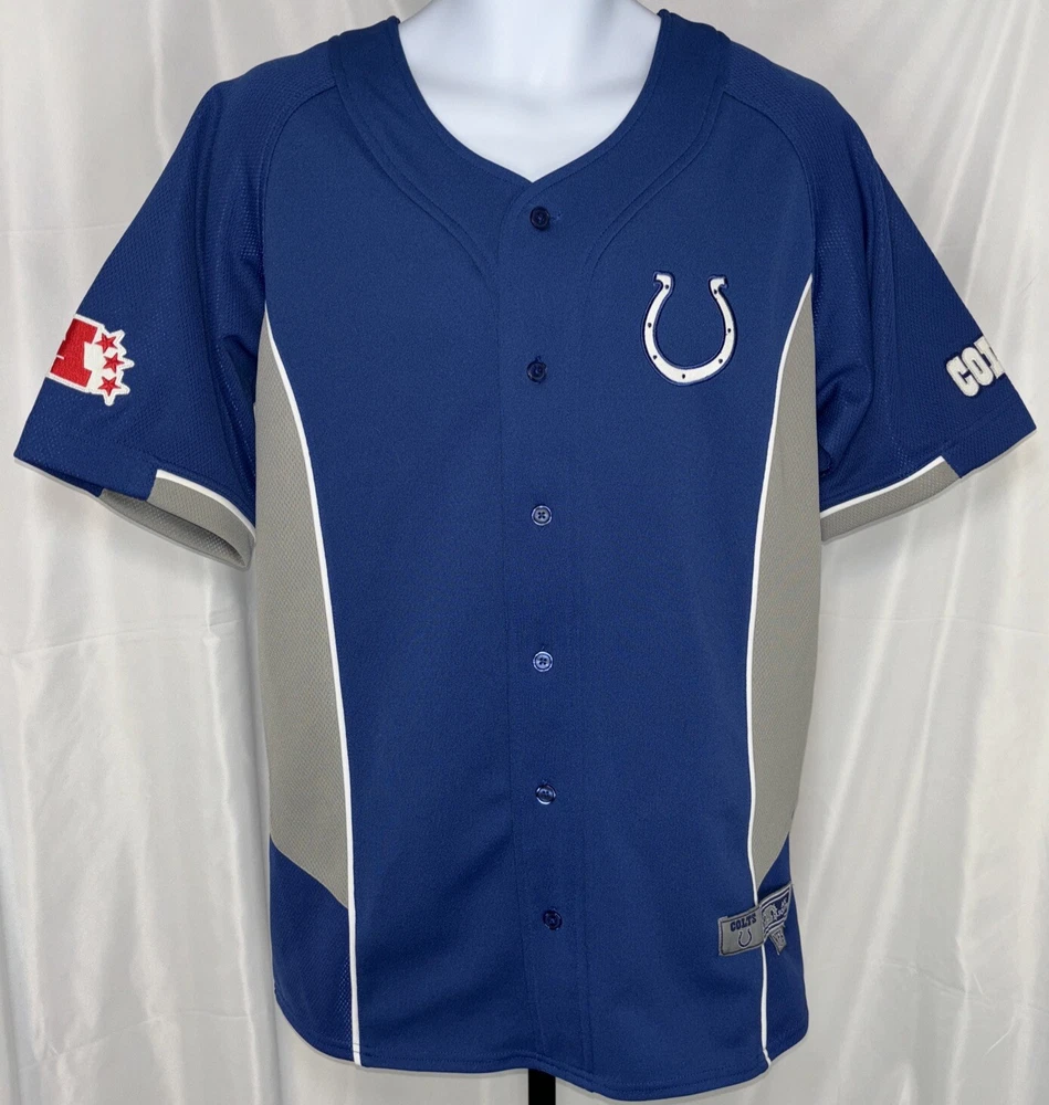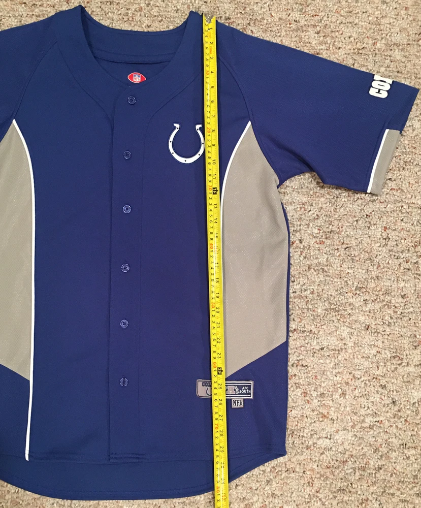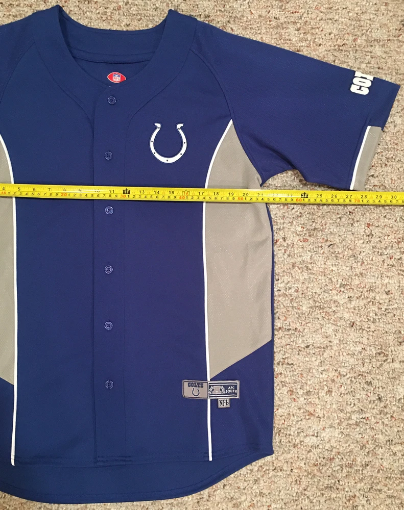 Show off your team spirit with this Indianapolis Colts stitched jersey from VF Imagewear. This officially licensed product is perfect for any fan of the National Football League (NFL). The blue color is perfect for showing off your team colors, and the medium size fits most men comfortably. Made in Jordan, this high-quality football jersey is perfect for regular season games and post-season celebrations. It is a must-have for any Colts fan looking to show off their team pride. Whether you're at the game or watching from home, this jersey is sure to make a statement.