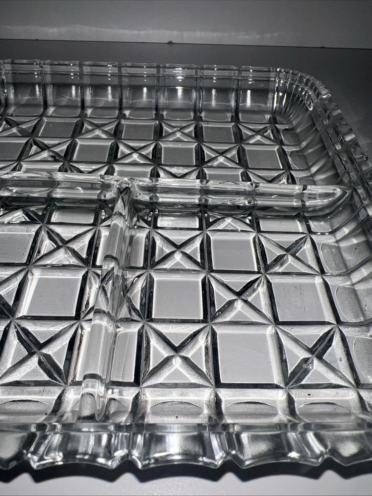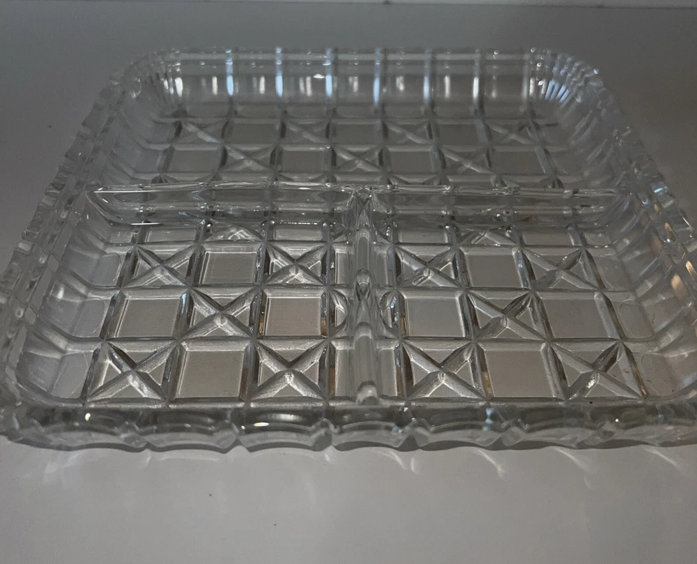 The Indiana Glass Relish with 3 sections is an elegant glass dish designed for serving various types of relishes or condiments. The dish features three compartments, allowing for convenient separation and presentation of different relishes or snacks. With its clear color and unmarked branding, this relish dish offers a simple and classic design that would complement any table setting or dining decor. Perfect for serving appetizers, dips, or toppings, this Indiana Glass relish dish is a versatile and stylish addition to any kitchen or dining collection.