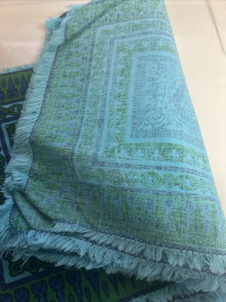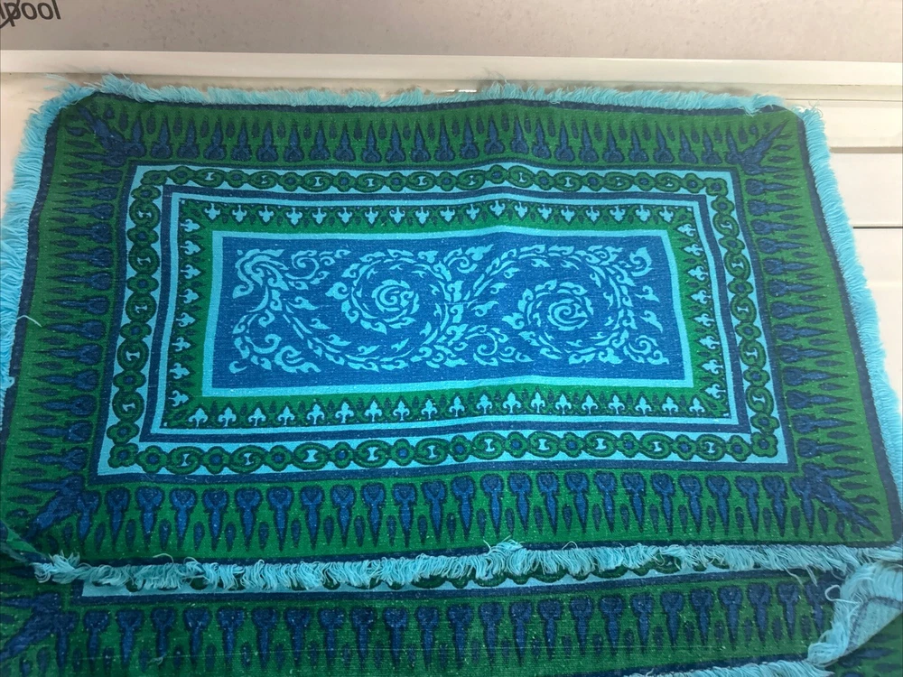 Enhance your dining area with this beautiful set of 8 Indigo Blue/Green Placemats from India. Each mat has a frayed edge and features a rectangular shape with a 19-inch diameter and 11-inch length. The set is perfect for multipurpose occasions and can be used for any event. The placemats are made of high-quality cotton material and are machine washable up to 100°F. The set is branded as Indigo Blue Placemats and is designed with a variety of themes such as Garden, Dragonfly, Fairies, Hippie, Nautical, Gypsy, Moon & Stars, Bird, Princesses/Fairies, Food/Kitchen, Mermaids, Food & Drink, Butterflies, India, Bohemian Fashion, Farm Life, Beach, Love, Music, Paris, and Unicorns. The placemats are perfect for those who love to add a touch of ethnic decor to their dining area. Excellent condition Set of 8! Beautiful decor ….. matches a lot of themes