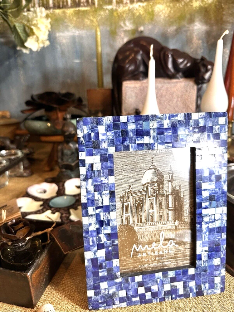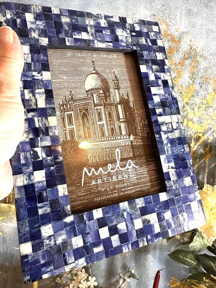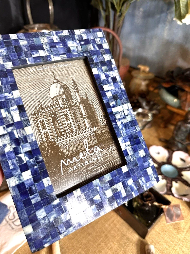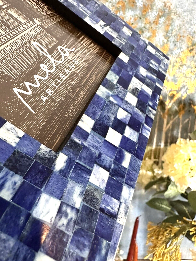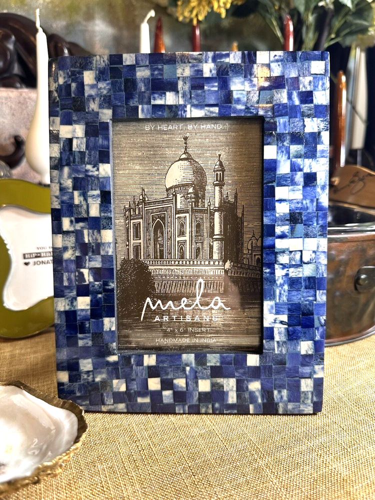 The Mela Artisans Indigo Hand Painted Photo Picture Frame is a contemporary designer piece featuring small indigo tiles in various shades of blue, creating a beautiful abstract pattern. Made by artisans in India, this 4x6 frame has a rear-loading photo insertion and a matte finish. The frame measures 8.5 inches in height, and 6.5 inches in width, with a portrait orientation and clear glass. This unique and stylish frame is suitable for all occasions and would make a stunning addition to any home decor. Great condition. Artist signature on back in metal. You will receive the picture frame that is in the picture. If you are new here, you may see if other items that will be listed this week or next week. So, you get a sneak peak of what is coming up next! :)!! Here is my Ebay shop: YouBeYou LLC If you have any questions even after you have purchased the item --- I am here for you to answer any questions that you may have! I strive to work diligently with every buyer to ensure they are a satisfied buyer, so please contact me anytime. This is a pre-owned item and I take great care to accurately describe the item but please see the pictures for full details. While we do our best to list every item in detail, these are vintage and pre-owned items, and some flaws are to be expected. Please see all photos/ video as they are a large part of the description of our items. Items come from a smoke-free environment. Each item is described in accurate detail with multiple measurements and various photos at different angles front and back, side to side, top and bottom. I have additional similar items that I have yet to list that you may be interested in. Feel free to follow my store ( YouBeYou LLC ) to see those when posted. Please see all photos/ video as they are a large part of the description of our items. I strive to make every purchase a pleasant experience. Please feel confidence in you purchase that I'll make every effort to correct any issues that may arise. If used, there are always some signs of wear -- well, because it is used, vintage, or antique. Most items are used -- Each item is inspected for quality. It is very important to us that you have a happy Ebay experience! Thank you for supporting a small business like ours! (Note: pictures may include measurements, and some have a video.)
