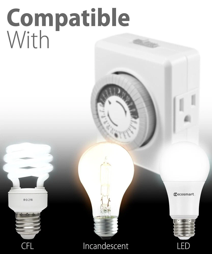 Indoor 24-Hour Plug In Grounded Daily Mechanical 2 Outlet Timer Light Switch - Youtube Video will open in a new window Using the eBay App? Paste link into a browser window: Great for Lighting Conveniently turn your indoor lights on or off automatically anytime with Fosmon's 24-hour mechanical timer. It is ideal for seasonal lights and lamps. Fosmon's timer is also great to help deter crime as it automatically turns your lights on and off. 2 Outlet Design Designed with dual outlets, letting you plug in up to two devices at once. Fully Programmable 24 hour programming in increments of 30 minutes. Easy to operate and programmable with 48 pushpins, up to 24 on/off settings per day - the cycle repeats every 24 hours. A convenient override switch is located on the top for manual uses. Save Energy and Reduce Utility Costs Fosmon's Outlet Timer can help save on energy and reduce utility costs as it can turn your devices on and off automatically. Multiple Uses Great for TVs, lighting, heaters, sprinkler systems, terrariums, aquariums, humidifiers. Limited Lifetime Warranty This Fosmon product includes a limited lifetime warranty. Please visit Fosmon's website for more details. Specifications •110-120v AC Outlets •15amps max •125VAC,60HZ,15A,Resistive •125VAC,60HZ,15A, General purpose •125VAC,60HZ,10A / 1250W,Tungsten •125VAC,60HZ,3/4HP TV-5 •ETL Listed Package Includes 1 Pack - 1x Outlet Timer 2 Pack - 2x Outlet Timer 3 Pack - 3x Outlet Timer Features: [DESIGN YOUR OWN SCHEDULE] Our Plug in timer for electrical outlets is fully programmable. With up to 24 on and off settings per day, you can program your devices to auto on/off in as small as 30-minute intervals. Settings will repeat daily once programmed and plugged in. [AUTOMATE YOUR HOME OR OFFICE] Automate your home or office lighting with our timer light switch to enhance home security. Turn on and off lamps, indoor light, reptile lights, small appliances, Christmas trees, aquarium fish tanks, grow lights, holiday light decorations and other electric devices with our handy light timer switch. [SAVE ENERGY & MONEY] Turn on and off TV, fan, oven, heaters and other electrical devices with our indoor outlet timer to help reduce energy and save money. Please note that your Mechanical timer’s pins will come pressed DOWN by default. Pull the pins UP to begin setting your electric timer. [CONVENIENT AND COMPATIBLE] Each package includes 2 timer plugs powering 4 electrical devices. The wall timer plug is compatible with fish tank heat power center, plant light, reptile habitat lighting, and most of the small appliances. Compact fluorescent lighting, LED bulbs compatible. [SAFE AND RELIABLE] Our Fosmon 110-120V programmable outlet timer is ETL listed and rigorously controlled for quality and safety. RATINGS : 125VAC, 15A, 1875W, 10A Tungsten, 3/4HP [LIMITED LIFETIME WARRANTY] Join millions of satisfied customers with our limited lifetime warranty, backed by our experienced and dedicated US-based customer service. See our other items 24 Hour Outdoor Mechanical Outlet Timer Weatherproof Automatic Switch Light HDMI Cable Cord 1.4 4K 3D HDTV PC Xbox PS5 High Speed Plug 3 6 10 15 25 30 50 FT 1225J Surge Protector 6 Outlet Extender With 4 USB Charger Port Wall Adapter Tap FosPower 3 6 10 15 25 FT Gold Plated RCA Male L/R Stereo Audio Cable Cord Plug 7 Day Digital LCD Electric Programmable Dual Outlet Plug In Clock Timer Switch About Us Payment Shipping Return Policy About Us Payment Shipping Return Policy Established 2002 and located in Minnesota, USA, SF Planet specializes in electronic accessories. We strive to produce premium products from electronics to home products to meet your everyday needs. We carry Vena, GreatShield, Fosmon, FosPower, Braumm, Garnen & JuzPetz products. Questions? Please feel free to contact us. We are here to be your one stop shop and provide a great shopping experience for you! We accept payment by any of the following methods: PayPal, Visa, Mastercard, Discover, American Express Please note that immediate payment is required in order to process your order and get it shipped out to you as soon as possible. If you are purchasing multiple items, please wait for ebay confirmation email to combine shipping. Payments are expected within 7 days. Unpaid item will be filed without receiveing payment. We offer FREE Standard shipping on all orders in the United States! For international orders, we offer free shipping on most products. Please check the shipping and handling rates to confirm before making your purchase. Your order will be dispatched within 1 business / working day of receiving payment (Monday - Friday). Holiday Policy : Please note that During Holidays, we may extend our dispatch time to 3 business days due to the volume of orders , but please rest assured that we will be shipping out orders as soon as possible and update tracking as soon as it is available. In the very unlikely event that your item is lost or damaged during post, then WE are responsible and will issue either a full refund or replacement. If you are not 100% satisfied with your purchase, you can return the product and get a full refund or exchange the product for another one, be it similar or not. Please note, NOT ALL ebay products will have free returned shipping . Please feel free to check with us if your listing qualifies for free returns before you purchase your item. You can return a product for up to 30 days from the date you purchased it. Any product you return must be in the same condition you received it and in the original packaging. Please keep the receipt. Please note that based on condition of item when recieved due to a return, we may decide to offer a partial refund without. Indoor 24-Hour Plug In Grounded Daily Mechanical 2 Outlet Timer Light Switch - Youtube Video will open in a new window Using the eBay App? Paste link into a browser window: Great for Lighting Conveniently turn your indoor lights on or off automatically anyti