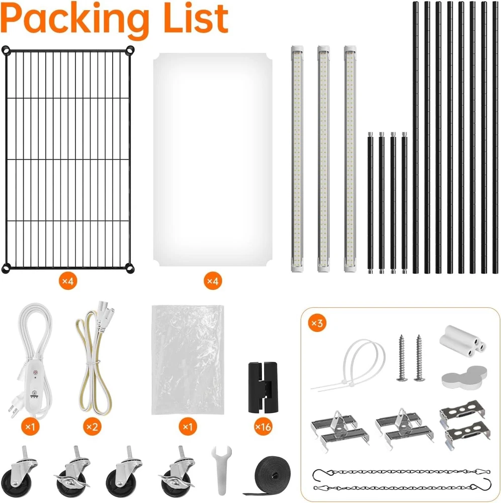 This Indoor Greenhouse with Grow Light and Metal Plant Stand is designed for vegetative growth, featuring a full spectrum LED light with a minimum wavelength of 400 NM. The greenhouse is the perfect size for indoor use, measuring 23.5"L x 13.8"W x 59"H, and the metal frame provides stability and durability. The black color and zipper closure make it an attractive and convenient option for any home or garden. Made in the United States, this grow light kit is lightweight at 19.46 pounds and suitable for indoor use.
