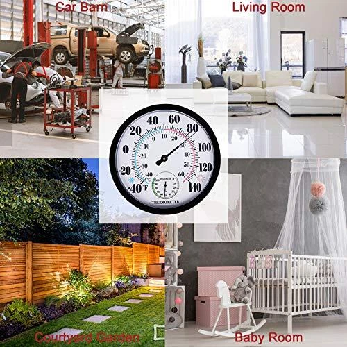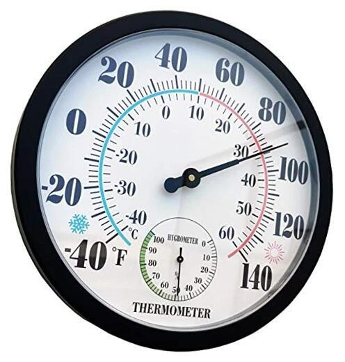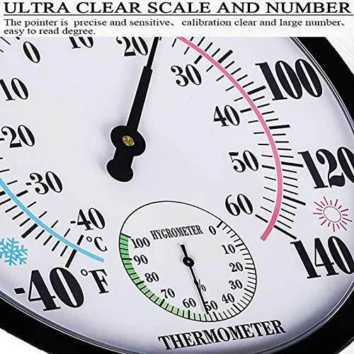 30 Days Return Policy Fast Delivery Trusted seller Indoor Outdoor Thermometer Large Wall Thermometer-Hygrometer Waterproof Does not Require Battery (Black) Product Description Large 10 inch dial with black bold lettering makes it easier to read the temperature and humidity Temperature range from -40 to 60°C, -40 to 140℉ to suit all climates The product uses a plastic bottom case and an acrylic dial, environmentally friendly design, does not require batteries The weather resistance and waterproof of the thermometer can be applied to the decoration of homes, offices, yard, garages, etc. It only takes 3 hours for the thermometer to automatically match the local temperature, please feel free to contact us if you have any questions about our products Shipping Returns Payment Shipping Shipping is FREE to all addresses other than APO/PO boxes in the lower 48 states. All our stock ships from US-based warehouses. Shipped via USPS or UPS (depending on location and package weight) Unless stated otherwise, all orders will ship within 24-72 hours of your payment being processed. Check our feedback to see the great reviews of FAST shipping we offer. Returns As our valued customer, we will do our best to make sure the product you receive arrives to you on time and as expected. If you are not satisfied with your purchase, please contact us within 30 days of receiving your order to process a return. Payment We currently accept payment via eBay managed payments only. Once payment is cleared, we will dispatch your shipment within 1-3 business days. Please refer to the "Shipping" tab for more information regarding shipping speed to your destination.