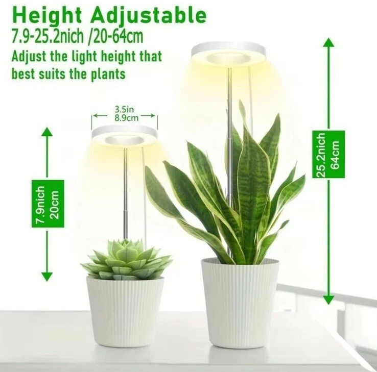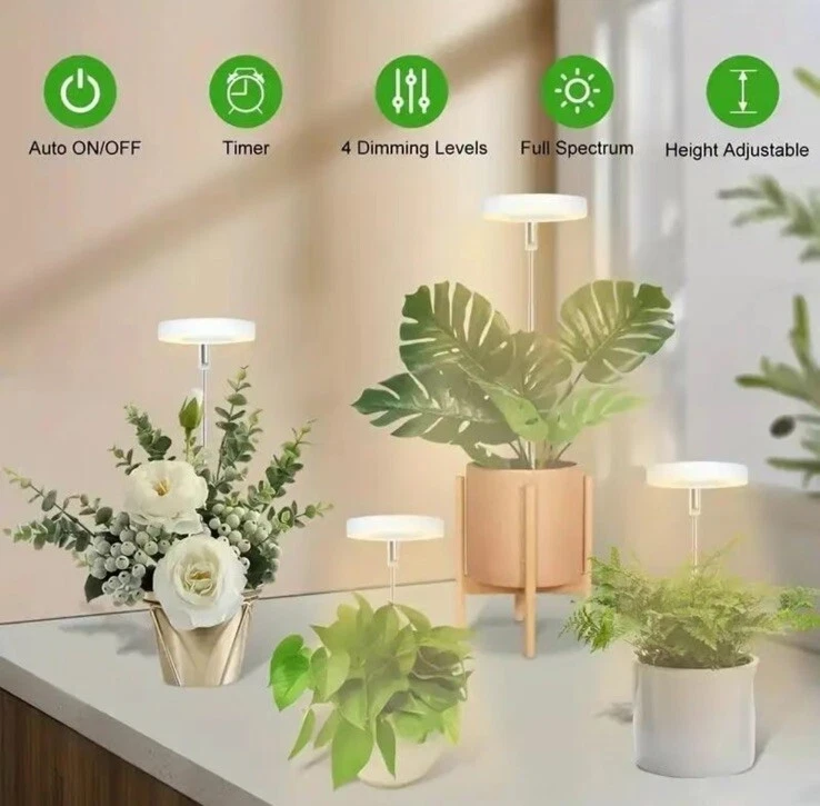 Indoor Plant Growth Light, 1 Count USB Powered LED Height Adjustable Plant Light with 4 Dimming Brightness & 4/8/12 H on/Off Timer