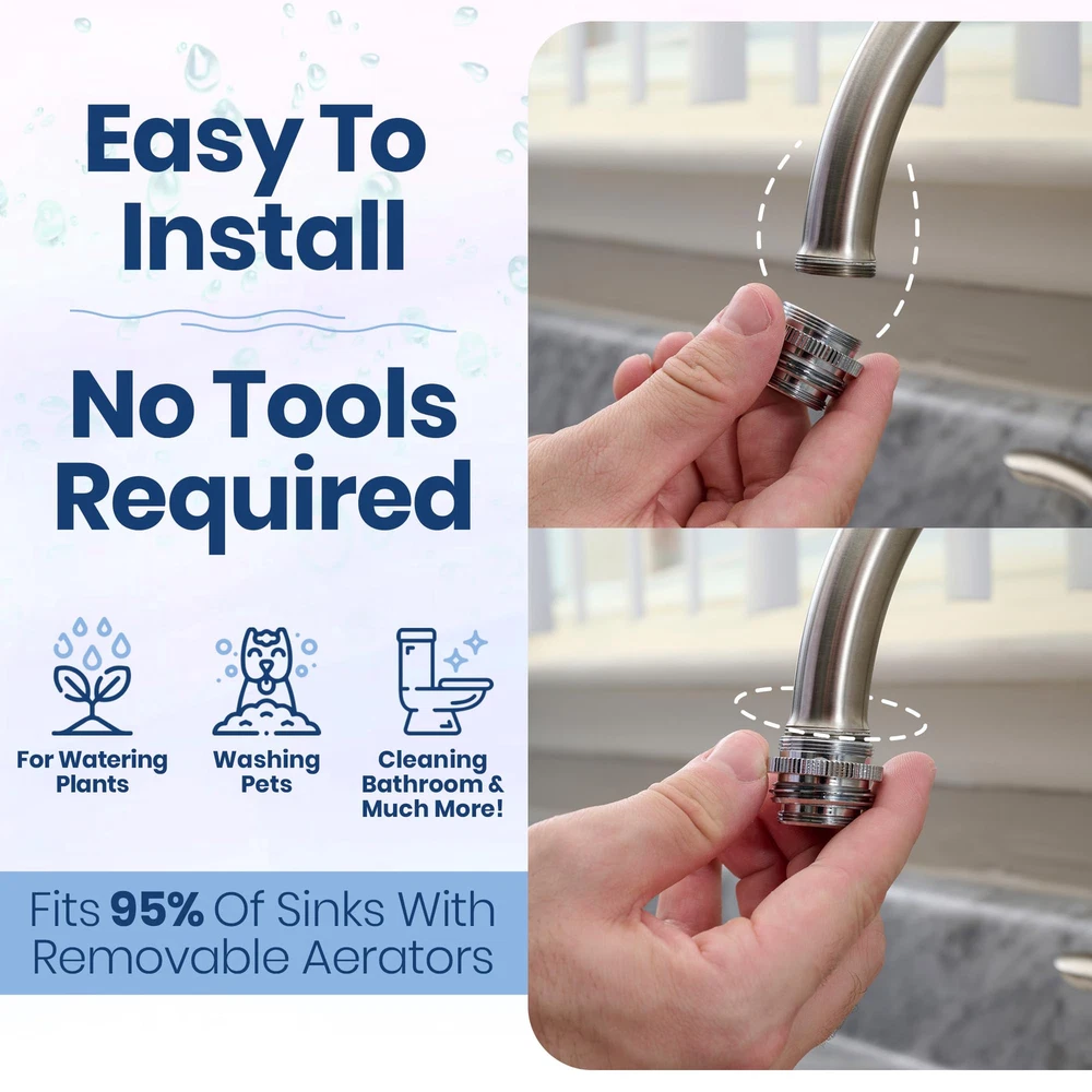 Convenient Sink Hose - Use our sink hose attachment to easily water indoor plants, hose off your apartment balcony, wash your dog, or even fill up a fish tank. You can quickly get the job done with faucet hose! Innovative Design - indoor sink hose quickly attaches to your kitchen or bathroom faucet. The multi-pattern nozzle is made with with high quality brass fittings to ensure there are no leaks while your carry your garden hose attachment through your home. Easy To Install - Everything is included to easily connect your long hose attachment to bathroom or kitchen sinks. In under a minute your can have your hose attachment for sink faucet hooked up and ready to use! Our kit includes six faucet to hose converters and if they don’t fit, we will send you additional converters for FREE. Built To Last - Leak-resistant and rust-resistant, Faucet Sprayer Attachment is extremely durable. When not in use, the sink hose attachment for faucet with an aerator will fit in the, included pouch for easy storage in your bathroom or kitchen drawer! Great For Apartment Living - Elevate your apartment living with Kitchen Sink Sprayer Hose. While most apartments don't have access to an outdoor garden hose, is renter friendly and will easily connect a garden hose to sink faucets in your kitchen or bathroom for all your needs, including a dog shower attachment!