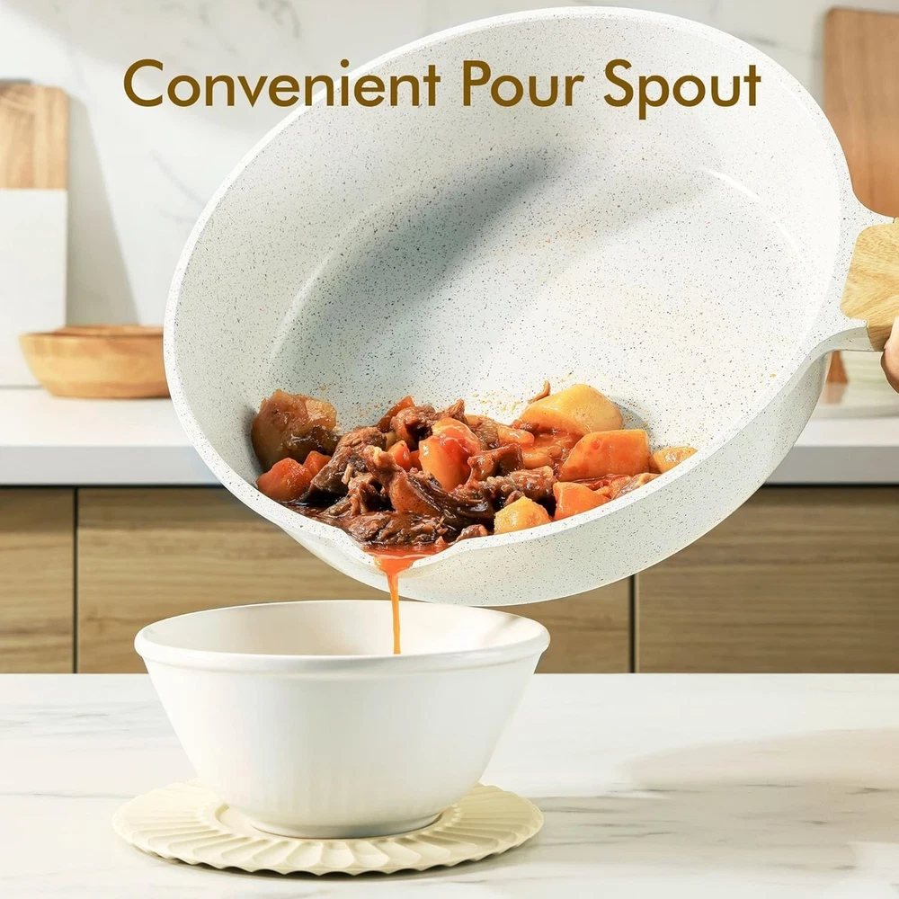 Induction Compatible 10-Inch Ceramic Saute Pan with Glass Lid & Stay Cool Handle ‹ › ‹ › ‹ › ‹ › ‹ › ‹ › ‹ › ‹ › ‹ › Induction Compatible 10-Inch Ceramic Sauté Pan Healthy Ceramic Skillet Made of natural ceramic, free of intentionally added PFOA, PTFE, PFAS, lead, and cadmium. No toxic substances will be produced even when overheated. Experience peace of mind knowing there’s no coating to come off into your food. Features: Super Nonstick Surface: The smooth ceramic surface ensures that eggs and other delicate foods slide right off with minimal effort, resulting in flavorful dishes with less oil. Induction Ready: The stainless steel base makes this pan compatible with all stovetops, including induction cooktops, while the cast aluminum construction guarantees fast and even heat distribution without warping or wobbling. Versatile Cooking: With a size of 10" in diameter and 2.7" tall (3.5 Quart capacity), this sauté pan is perfect for sautéing, stir-frying, boiling, shallow frying, and deep frying. The handy pour spout makes it easy to transfer soups and oils. Durable Glass Lid: The transparent tempered glass lid allows you to monitor cooking without losing heat or moisture, enhancing your culinary experience. Ergonomic Handle: The Bakelite handle is designed for comfort and stays cool while cooking, ensuring a safe and pleasant cooking experience. Oven safe up to 302°F. Easy to Clean: With its slick nonstick surface and rivet-free design, cleanup is effortless. A quick wipe with a paper towel is all it takes! Hand wash recommended to extend the nonstick surface life. Why Choose Our Ceramic Sauté Pan? If you prioritize health and the quality of your cooking, then this induction-compatible ceramic sauté pan is the best addition to your kitchen. Enjoy culinary creativity with a pan that delivers both functionality and elegance, ensuring your meals are not just delicious, but also health-conscious. Elevate your cooking experience today with our 10-inch ceramic sauté pan. It's time to create vibrant, flavorful dishes that bring joy to your table! Shipping Free & Fast Shipping - We offer free shipping to most of the USA with a normal delivery time of 3-7 days. However, due to the current situation, additional delivery time (up to 3 weeks) may be required for some items. Alternative Carriers - We may use alternative carriers (e.g. USPS, FedEx, UPS, etc.) to ensure your package arrives safely and on time. Due to the use of multiple carriers, we are unable to provide a tracking number automatically. Handling Time - Orders are processed and shipped within 1-2 business days of receiving cleared payment. Shipping Restrictions - Shipping to Alaska, Hawaii, Puerto Rico, Guam, and other US territories may incur shipping charges or delivery restrictions. Please contact us before ordering, or your order can be refunded/cancelled. State Restrictions - There may be restrictions based on your state of purchase. For example, certain items may not be shipped to California due to state regulations. Contact for Tracking Updates - If you require tracking updates or have any concerns about the delivery of your order, please feel free to contact us, and we will be happy to assist you. Return 30-Day Hassle-Free Returns - We want you to be completely satisfied with your purchase. If you are not, you can return the item within 30 days of receiving it for a full refund or exchange. Easy Return Process - To start a return, simply contact us and we will provide you with a prepaid return shipping label and detailed instructions. Restocking Fee - There are no restocking fees for returns. However, the buyer is responsible for return shipping costs if the return is not due to a seller's error. Refund Processing Time - Refunds will be processed within 5 business days of receiving the returned item in its condition. Payment We accept all major credit cards, PayPal, and Apple Pay for your convenience. Your payment information is secure and encrypted to ensure a safe and seamless transaction. Please complete your payment within 3 days of purchase to avoid any delays in shipping. Feedback Your feedback is extremely important to us. We strive to provide the best products and customer service possible. If you are satisfied with your purchase, please take a moment to leave us a positive review. If you have any concerns or issues with your order, please contact us before leaving negative feedback. We are committed to resolving any problems and ensuring your satisfaction. Contact Us If you have any questions or concerns, please feel free to out to our customer support team. You can contact us through the eBay messaging system. We are available Monday to Friday, 9:00 am to 5:00 pm EST, and we will do our best to respond to your inquiry within 24 hours. Buy it now and enjoy a pleasant shopping experience! Unit Quantity: 3.5 QT Stove Type Compatibility: Electric,Gas,Induction Set Includes: Lid Material: Ceramic Features: Dishwasher Safe,Non-Stick Type of Oven: Electric Type: Saute Pan Surface Coating: Non-Stick Item Diameter: 10 in Color: White Shape: Round Item Height: 2.7 Inches Item Depth: 2.7 in Number of Items in Set: One-Piece Heat Resistance: 550°F Item Weight: 3 lb