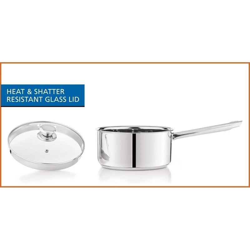 You may also like 8qt Stainless Steel Stock Pot W/ Lid Dishwasher Oven Safe Induction Cookware New 34.2 USD 36.0 USD Free shipping 5% off Non Stick 5 Qt Aluminum Stock Pot W/ Glass Lid Strainer Twist Lock Handles New 32.36 USD 34.06 USD Free shipping 5% off Nonstick Aluminum Sauce Pan 3qt Gray Stay-Cool Handle Heat-Resistant Lid New 21.26 USD 22.38 USD Free shipping 5% off Whether you’re cooking pasta for lunch, boiling eggs for breakfast, or meal prepping for the week, the Stainless Steel 3-Quart Saucepan with Straining Lid is the essential needed to make meals possible. The stainless-steel pot can boil water for all your cooking needs while the straining lid makes it easy to finish the job with less of the mess. The Stainless Steel 3-Quart Saucepan with Straining Lid is the saucepan for kitchens in need of this essential. 3 qt Induction Compatible Stainless Steel Saucepan with Lid Versatile 3-Quart Capacity: Ideal for cooking pasta, boiling eggs, and meal prepping with a 28L saucepan and straining lid set Durable Construction: Made with riveted heat and shatter-resistant glass for lasting durability and resilience Tri-Ply Base: Ensures quick and even cooking for enhanced culinary results Convenient Pour Spout and Straining Lid: Eliminates the need for a separate strainer, streamlining your cooking process Stylish and Coordinated Design: Complements your existing cookware while being made from ultra-durable stainless steel for long-lasting use You may also like Non-Stick Muffin Pan 12 Cup Carbon Steel Bakeware Baking Tray Cupcakes Kitchen 16.05 USD 16.89 USD Free shipping 5% off K- Slim Single Serve K-Cup Pod Coffee Maker Multistream Technology Home Office 122.27 USD 128.7 USD Free shipping 5% off Electronic Temperature Control A421 Series Durable Single Pole Double Throw New 172.45 USD Free shipping Crispy Protein Bars Low Carb Gluten Free 17g Protein Cookies Cream 4 Count New 12.99 USD 13.67 USD Free shipping 5% off Cat Cube Condo Sturdy Construction Play Lounge Padded Toy Modern Design Gray New 35.3 USD 37.16 USD Free shipping 5% off Heavy Duty Push Up Bars Stainless Steel Non Slip Handles Strength Training New 51.4 USD 54.11 USD Free shipping 5% off Solar Floating Ball Lights Flickering Flame Waterproof Outdoor Garden Decor New 30.49 USD 32.09 USD Free shipping 5% off 25Qt Marine Cooler Hard Sided Portable W/ Cool Riser Fish Ruler UV Protection US 43.2 USD 45.47 USD Free shipping 5% off Insulated Food Jar Vacuum Stainless Steel W/ Folding Spoon Outdoor Adventure New 24.89 USD 26.2 USD Free shipping 5% off 20 Piece Gold Stainless Steel Flatware Set Service 4 Elegant Dinner Utensils New 23.08 USD 24.3 USD Free shipping 5% off Warm Mist Humidifier Baby & Adult Relief Cough Congestion Allergies Dry Air New 50.44 USD 53.09 USD Free shipping 5% off Compact Mini Air Fryer Digital Timer Nonstick Healthy Cooking Shake Reminder 2Qt 61.74 USD 64.99 USD Free shipping 5% off