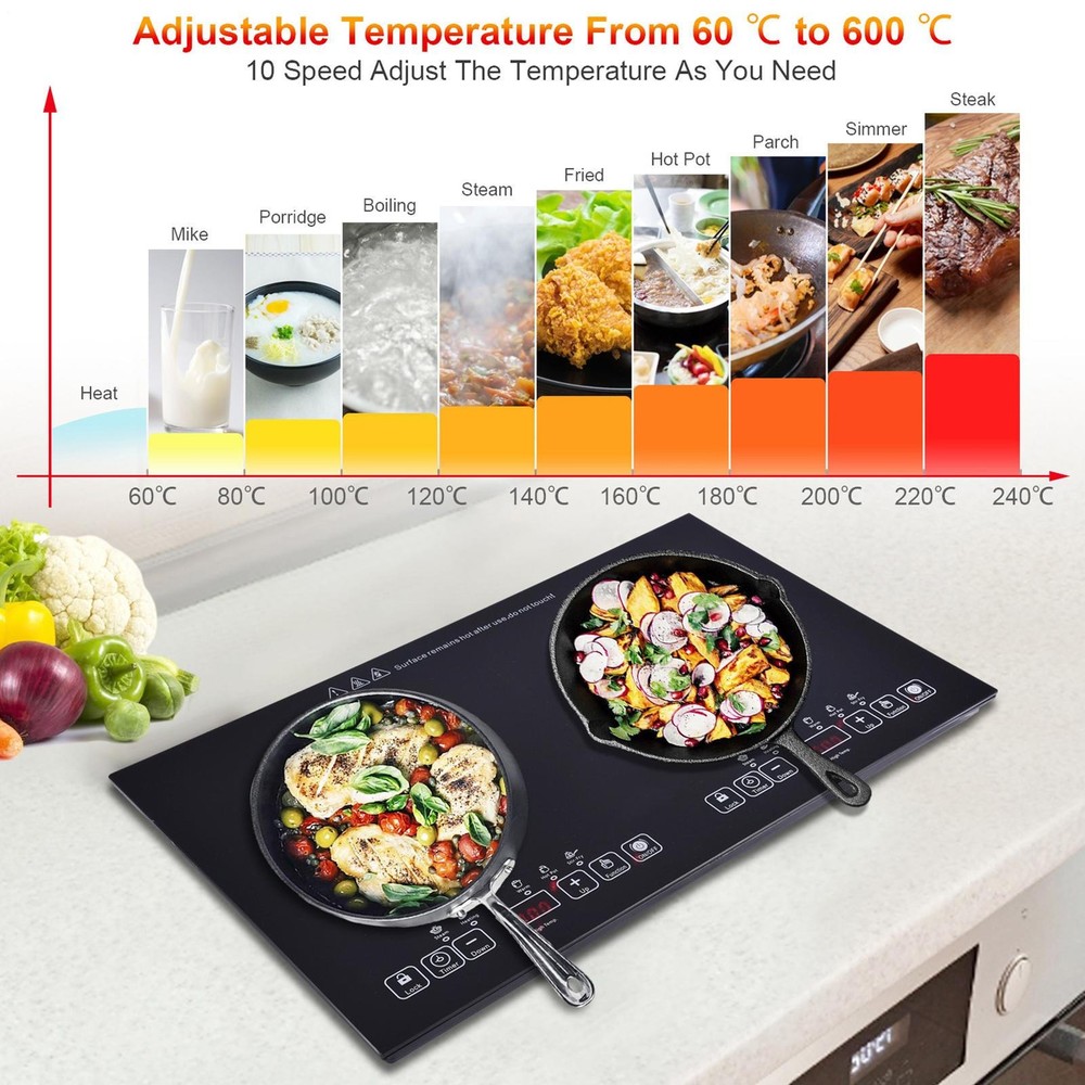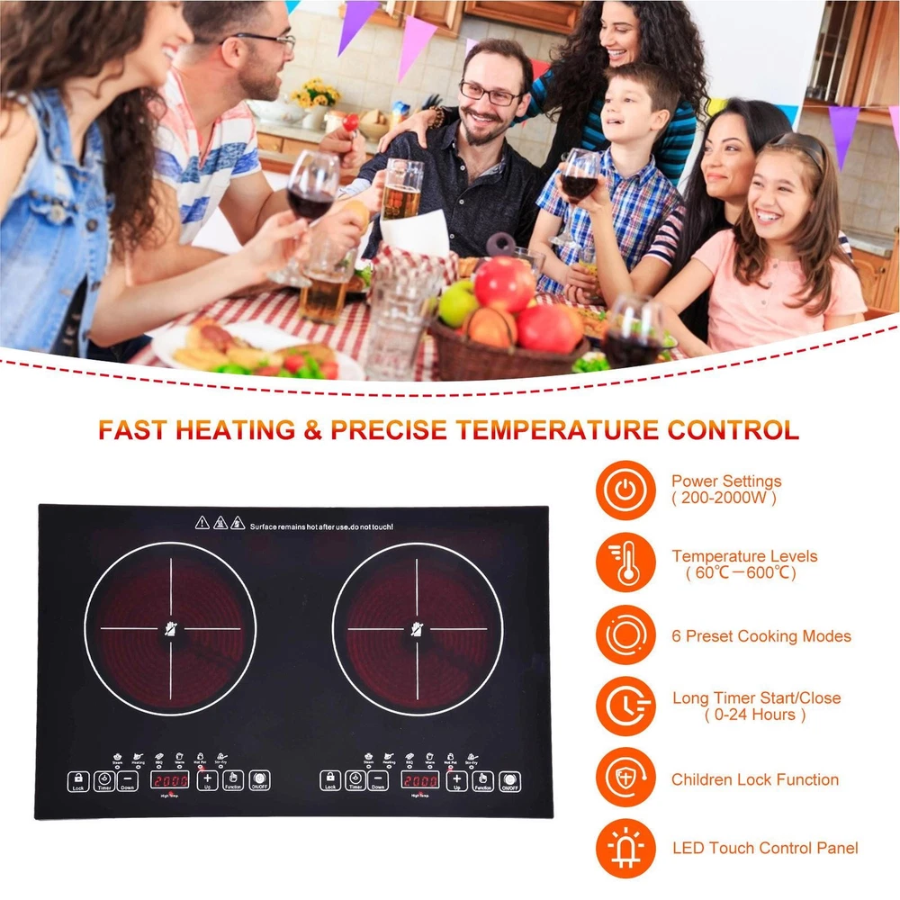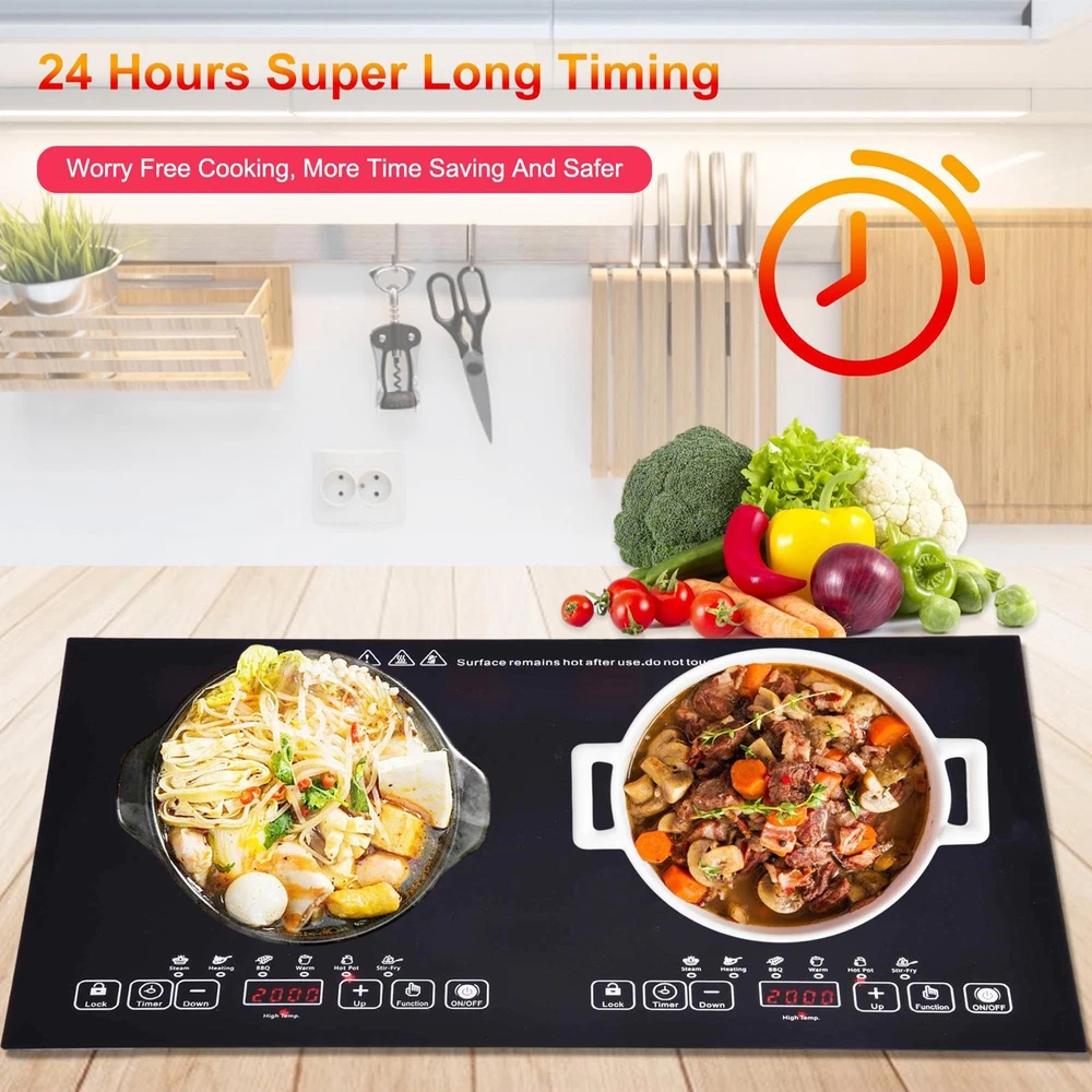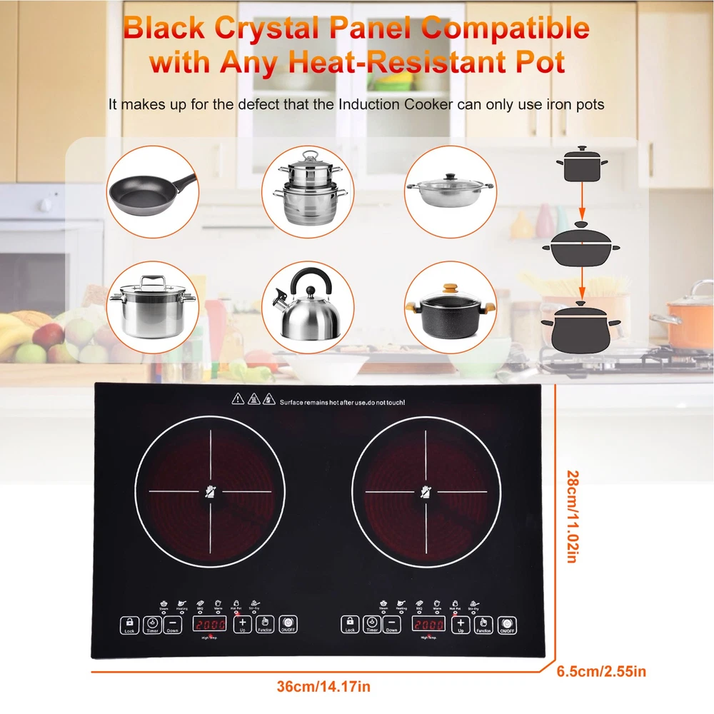 Store category Sign Up Now ! You may also like Product Description Bullet Points: Complies with Standard Voltage: With a 110V electric stove plug that complies with U.S. household standard voltage, you can use this electric ceramic stove right away without any wiring hassle. The power of the two burners is 2000W and 2000W respectively, providing fast and even heating. Simple Installation: This electric ceramic stove comes with a bottom bracket that can be attached or detached as you wishes. You can move it anytime to any place without drilling holes or using wires. It is ideal for small spaces, camping, or outdoor cooking. Multifunctional Cooking: This electric ceramic stove features a LED digital display, a pause function, overheating protection, high temperature warning, extra long 24-hour appointment timed on/off, and a child safety lock, making it versatile and convenient for any kitchen. Durable Construction: Made of high-quality black crystal plate material, this electric ceramic stove is designed to withstand high temperatures. With its solid glass cooktop that is easy to clean and anti-scratch, this stove will last for years. Harmless to Human Body: Experience safe and versatile cooking with our electric ceramic stove, effortlessly heating up glass pots, stainless steel pots, iron pots, and ceramic pots. This Electric Ceramic Stove provides a safe, anti-scratch surfaces that can handle glass pots and features overheating protection. You won't need to hire an electrician to install it - just use the bottom bracket included. Specification: Product name: Electric Ceramic Stove Product size: about 60x36x6.8cm/23.62x14.17x2.68 inches Slot size: about 59x35x10cm/23.23x13.78x3.94 inches Power: 2000W+2000W Color box size: about 70x41x11cm/27.56x16.14x4.33 inches Net weight: about 4.74kg Gross weight: about 5.5kg Voltage: 110V Plate: black crystal plate Wire: 1.5m copper power cord With child lock Packing List: 1 x Electric Ceramic Stove 1 x Instruction Manual Note: Due to different lighting and screen settings, the item color may be slightly different from the picture. Due to different manual measurements, please allow a 1-2cm difference in size. Payment Delivery details Terms of sales About us Feedback & DSRs Payment Before you palce an order, please kindly make sure that you have a paypal account. We accept PAYPAL payment only. Payment should be completed within 2 days after auction closed, or unpaid dispute will be filed for an closing auction. An unpaid case will be filled after 4 days. Delivery details We ship to your eBay address. Each package will be shipped to US by UPS Regular Parcel with tracking number. Please check your shipping address carefully before checkout, it can't be changed if order completed. All items will be shipped within 1-2 business day upon receipt of payment.Orders placed on weekend will be shipped within 3 days. If you do not receive your item in 7-10 business days.please contact us immediately for further assistance. We will be responsible for any damages or losses incurred in the shipping process. About us We maintain high standards of excellence FIVE STAR and strive for 100% customer satisfaction! Positive Feedback is very important to us. We hope that you contact us immediately Before you give us neutral or negative feedback, so that we can satisfactorily address your concerns. We promise to offer the lowest price and high quality produce. Our working time: From Monday to Friday(9:30 am to 18:00pm), we don't working on holidays ,hope you can understand and know that , thank you. Please always talk to us via ebay Message. We appreciate your business and look forward to growing our e-Bay sales with satisfied customers. Feedback Contact us If you have any questions, please feel free to contact with us by ebay Message during our business hours ( 9:30a.m. to 5:30 p.m.), or email us through eBay, we will try our best to help you to resolve it. For any presale or after-sale questions,please do feel free to email us! Due to the time difference, each email will be replied within 1 working day,and weekend will be delayed a bit. Feedback