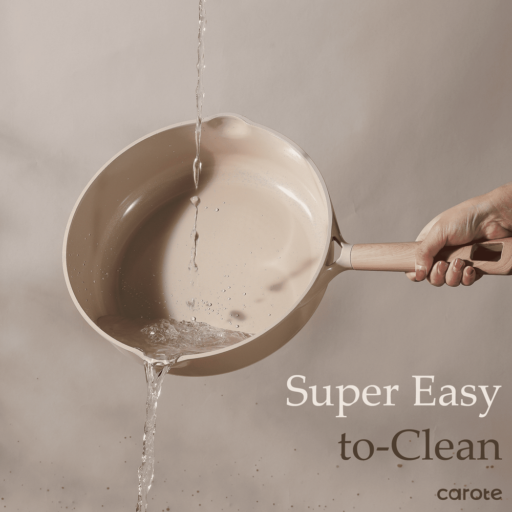 Why Carote? Enjoy the Best Value Carote has been committed to providing you with the best quality at the most fair and honest cost, with 25 years of experience in the non-stick cookware industry. We sell directly from our factory. A typical M12C model allows us to offer the lowest cost with higher quality products. We always adhere to the principle of customer first, pay attention to the customer's shopping experience, and provide customers with excellent service to ensure that every customer gets the Best Value for Money. STURDY BODY - Made of heavy-duty cast aluminum, this nonstick frying pan resists warping and wobbling while heating quickly and evenly. HEALTHY COOKING -This saute pan features a premium taupe ceramic nonstick coating and a stylish design, enabling effortless cooking. Food slides off easily, and less oil or butter is needed, promoting healthier cooking habits. EASY TO CLEAN - The taupe reinforced ceramic nonstick surface and bakelite handle with soft touch makes cleanup a breeze, saving time and effort in the kitchen COMFORTABLE HANDLE - Sturdy ergonomic handle with soft touch finishing for comfortable and safe cooking COMPATIBLE FOR ALL STOVES -Stainless steel induction base is suitable for gas,inducton,electric,ceramic stoves. VISIBLE COOKING -Tempered transparent glass lid allows for easy monitoring of cooking progress